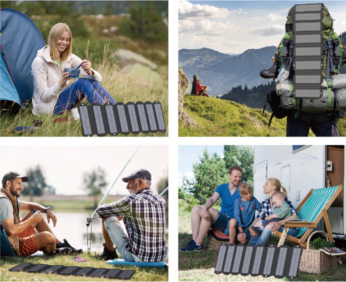 ●太陽光を電力に変換できるソーラーパネル付きの充電器です。