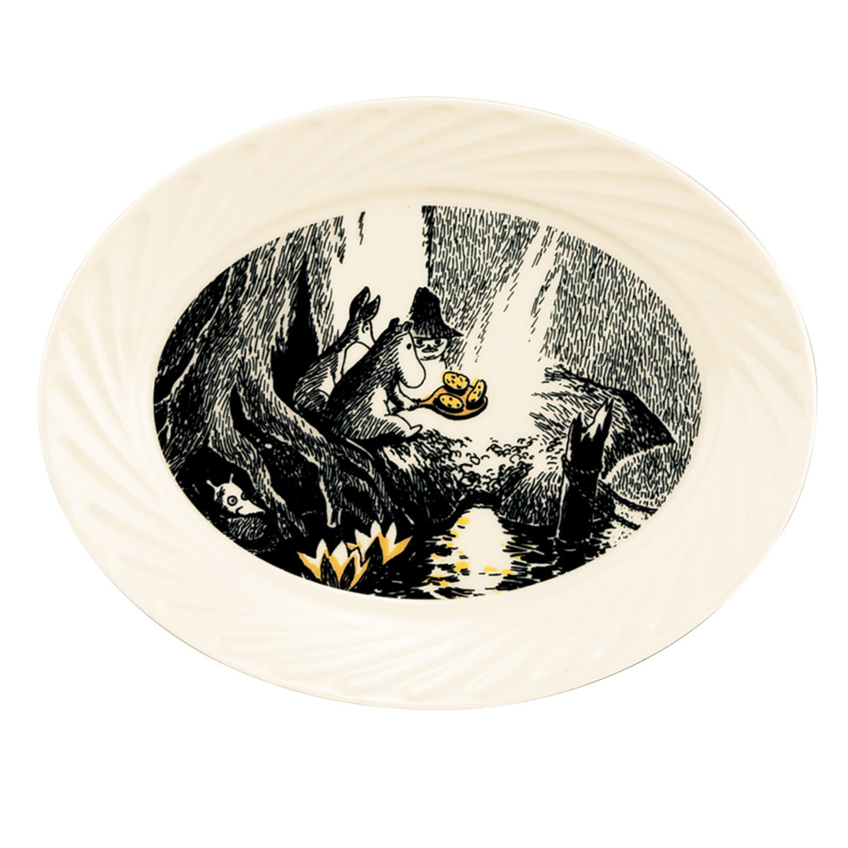 ムーミンの小説「ムーミン谷の彗星」の星佐和子さんによる挿絵デザインが魅力的なプレートです。楕円形のすっきりとしたデザインで、食卓におしゃれな印象をプラスしてくれます。約19.2cmの使いやすいサイズで、サラダやメイン料理はもちろん、焼き菓子やスイーツにもぴったり。インテリアとしても楽しめるデザインです。