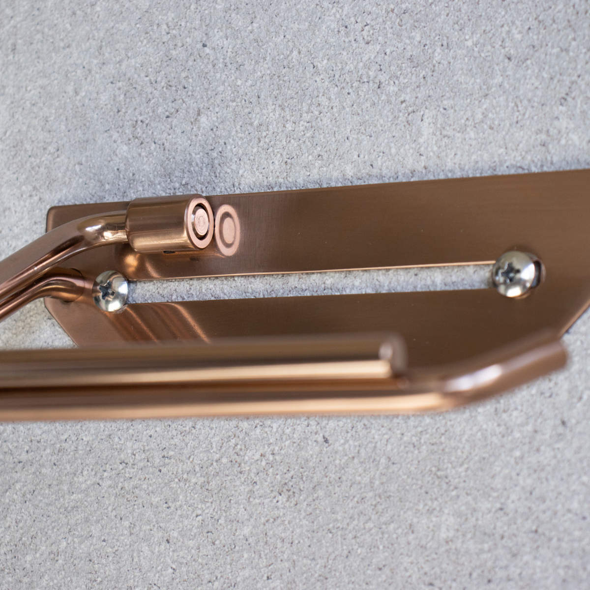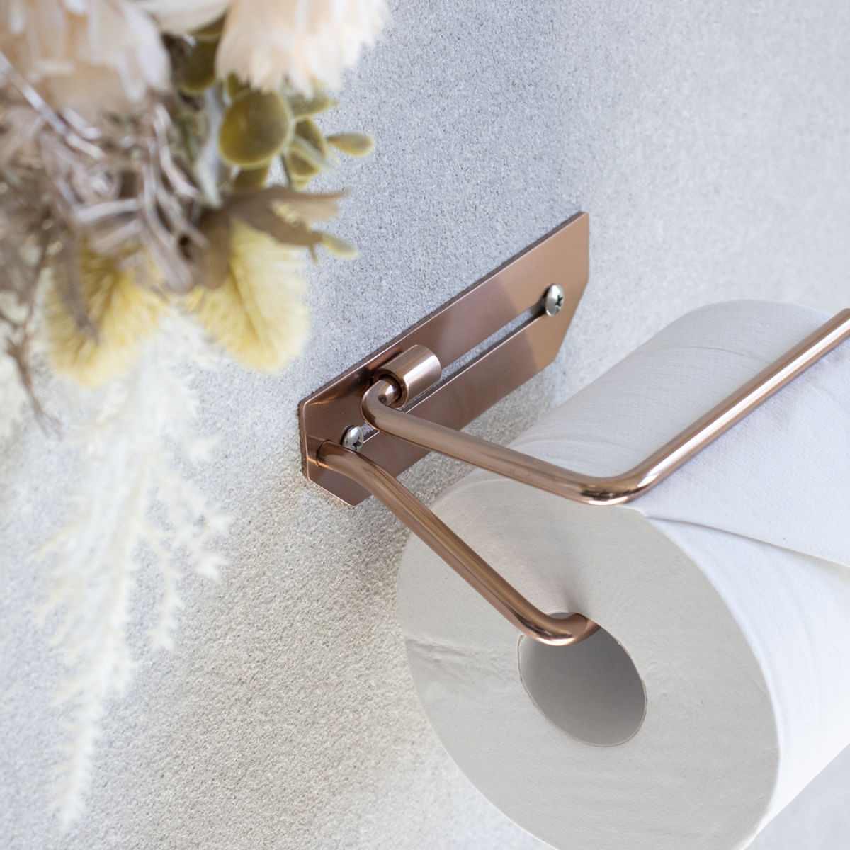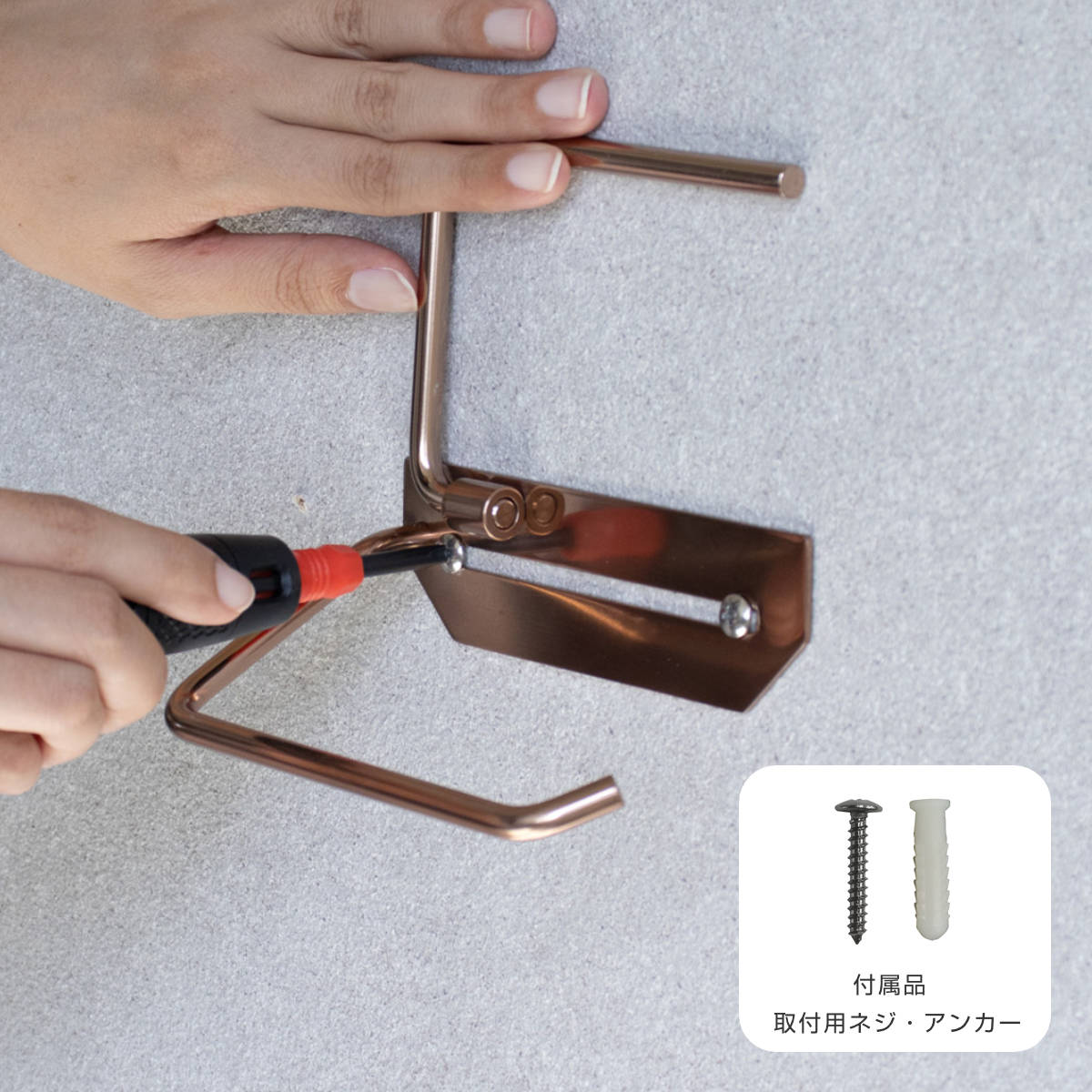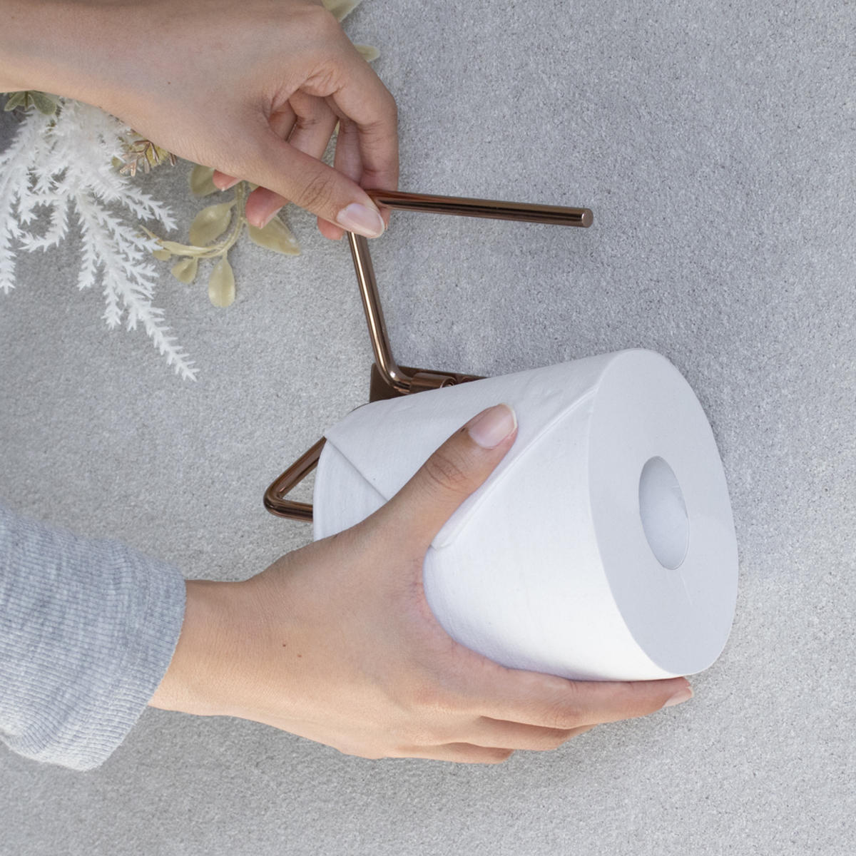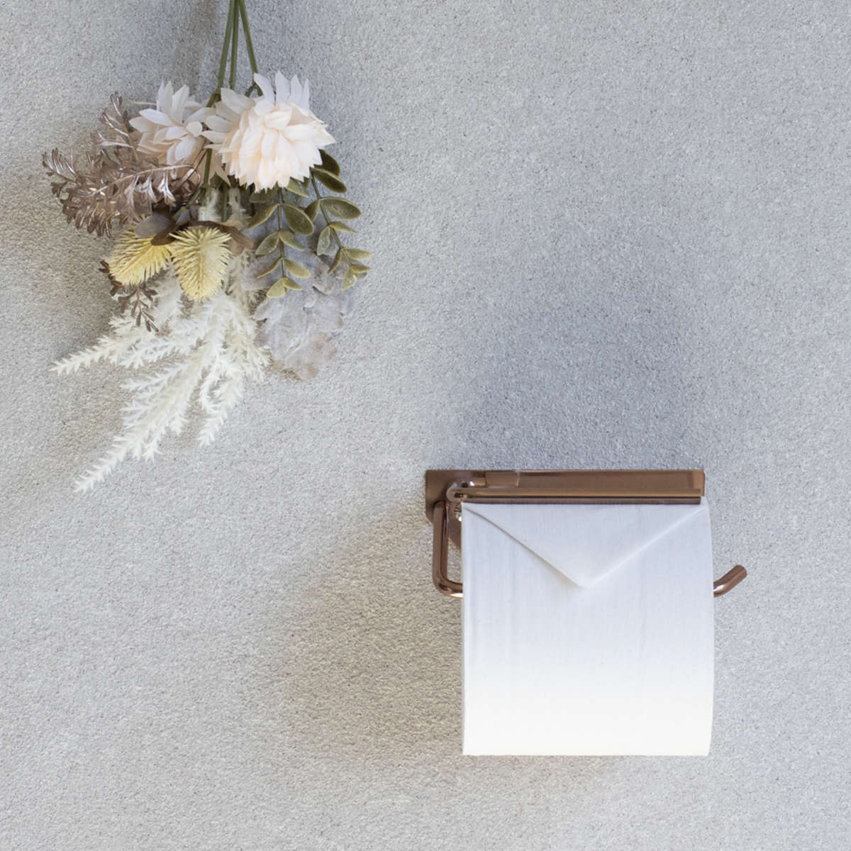洗練されたシンプルなデザインのトイレットペーパーホルダーです。飽きのこないスタンダードな仕上がりで、さまざまなトイレ空間になじみます。省スペースで設置できるシングルタイプで、限られた空間にもおすすめです。特殊カラーのピンクゴールドで仕上げられており、トイレ空間に華やかで上質な雰囲気を演出してくれます。