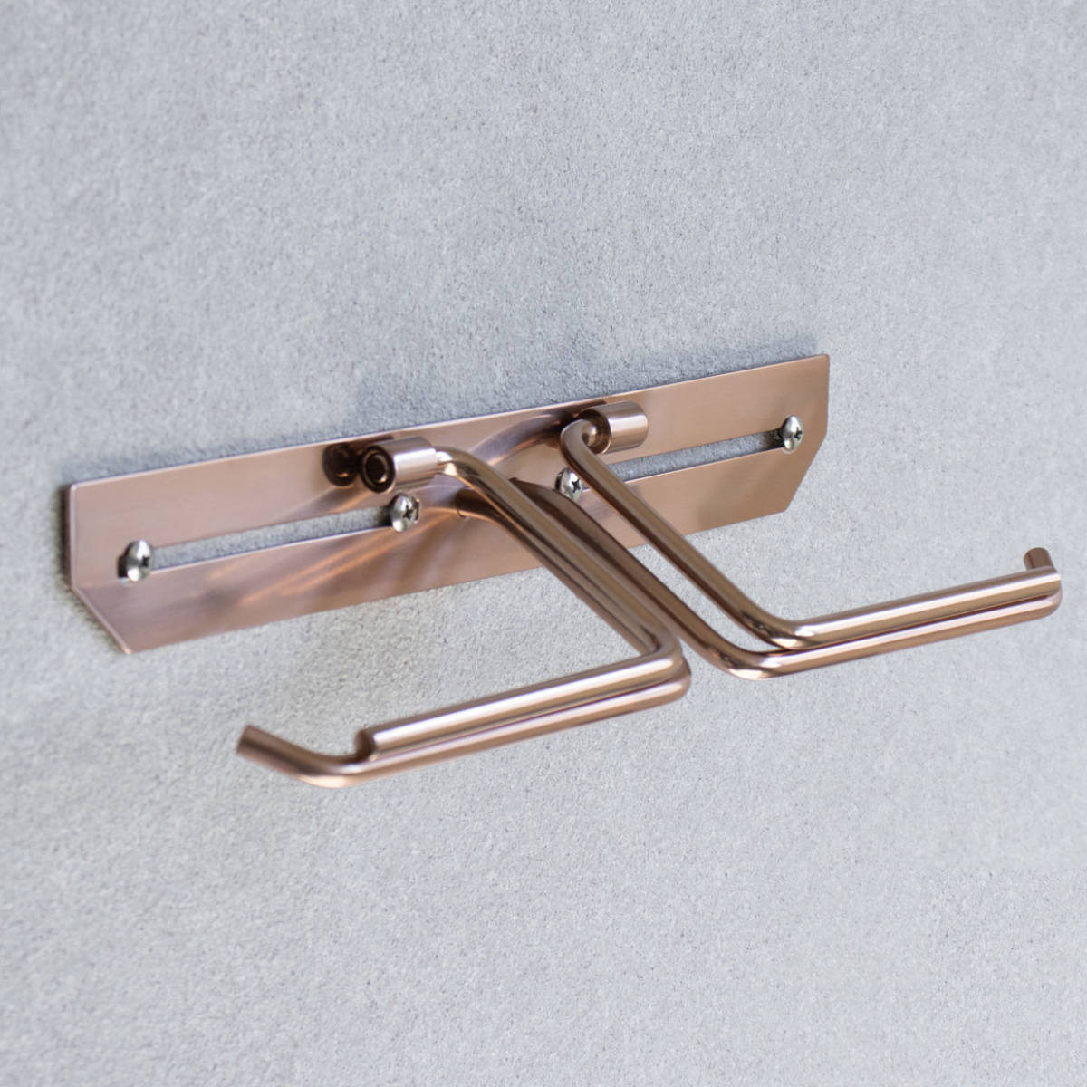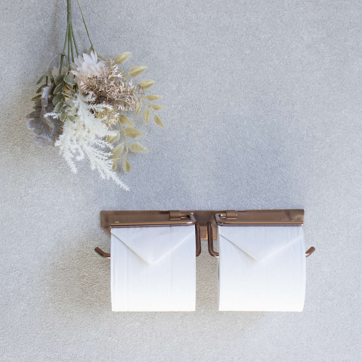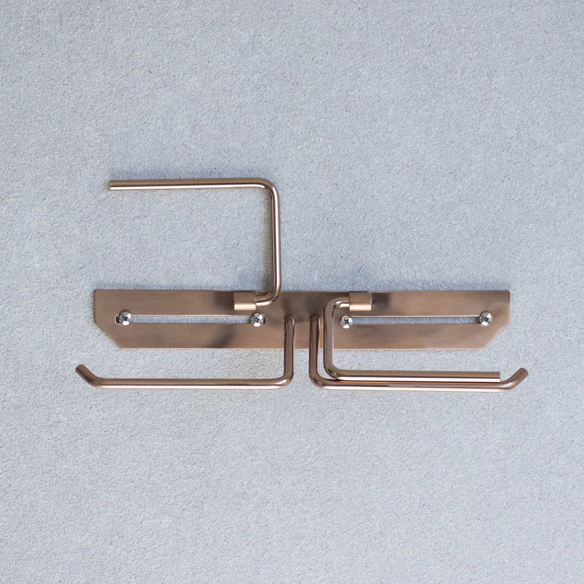 洗練されたシンプルなデザインのトイレットペーパーホルダーです。飽きのこないスタンダードな仕上がりで、さまざまなトイレ空間になじみます。ペーパーを2個セットできるダブルタイプなので、ストックができてペーパー切れの心配を減らせます。特殊カラーのピンクゴールドで仕上げられており、トイレ空間に華やかで上質な雰囲気を演出してくれます。