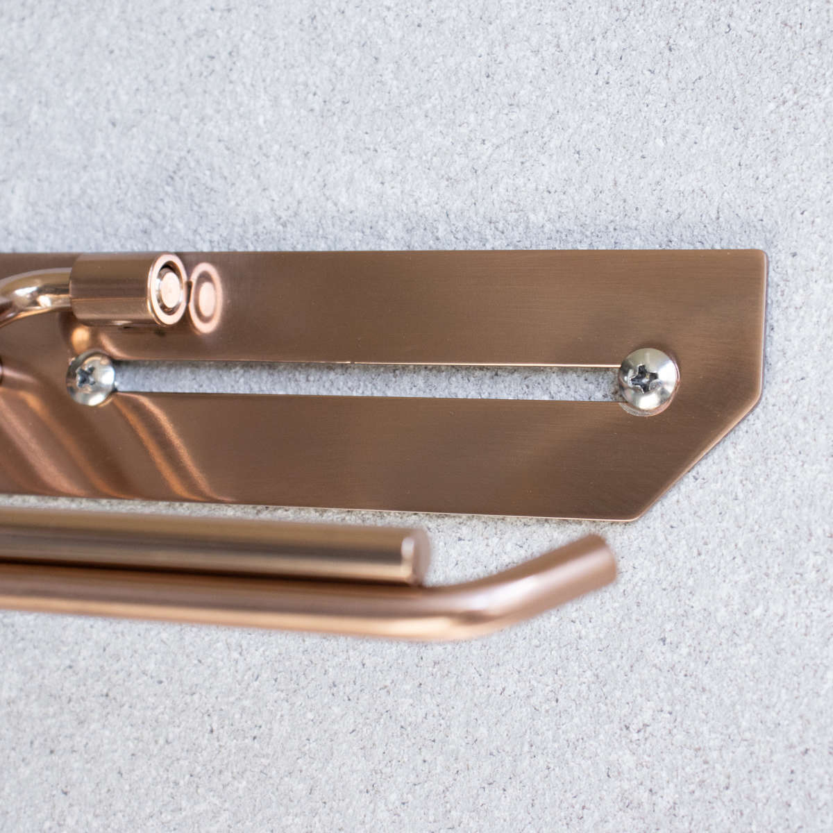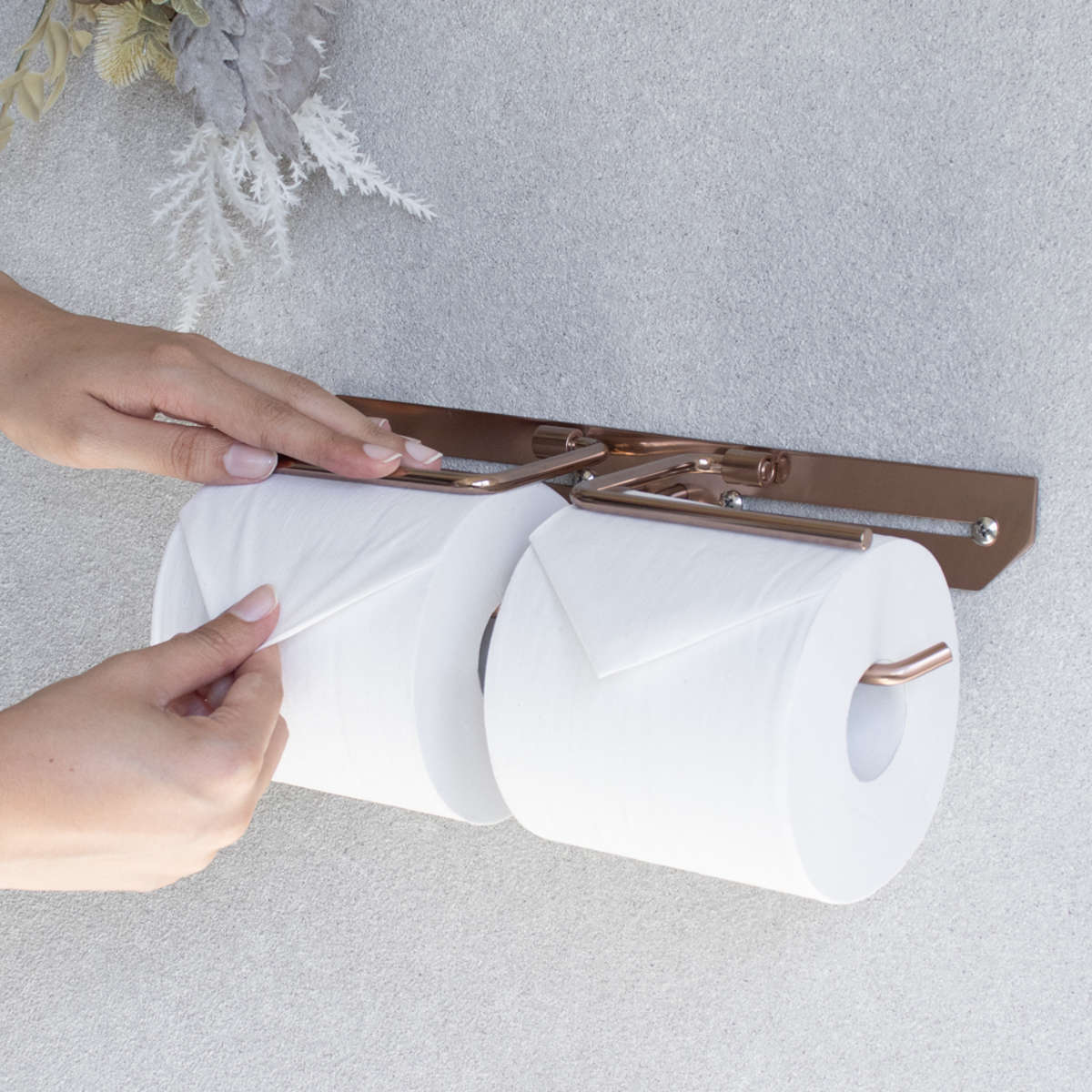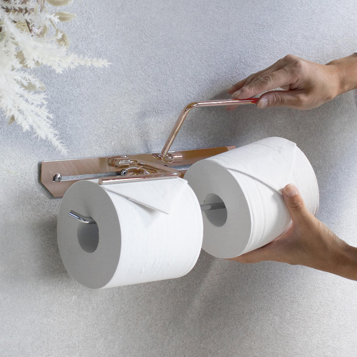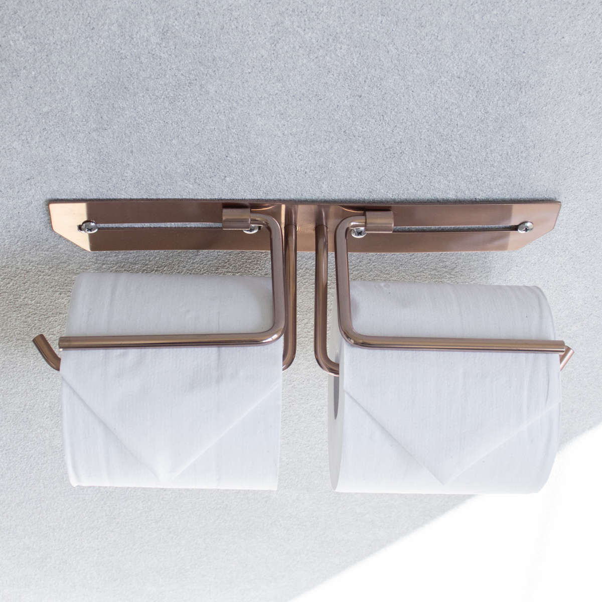 洗練されたシンプルなデザインのトイレットペーパーホルダーです。飽きのこないスタンダードな仕上がりで、さまざまなトイレ空間になじみます。ペーパーを2個セットできるダブルタイプなので、ストックができてペーパー切れの心配を減らせます。特殊カラーのピンクゴールドで仕上げられており、トイレ空間に華やかで上質な雰囲気を演出してくれます。