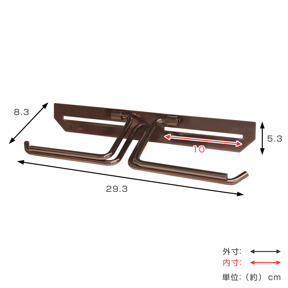 | サイズ | 約 幅29.3×奥行8.3×高さ5.3(cm) 背面取付部(左右共通):約 幅10×高さ0.5(cm) ※約幅10cmの間でお好きな箇所に取り付け可能 |