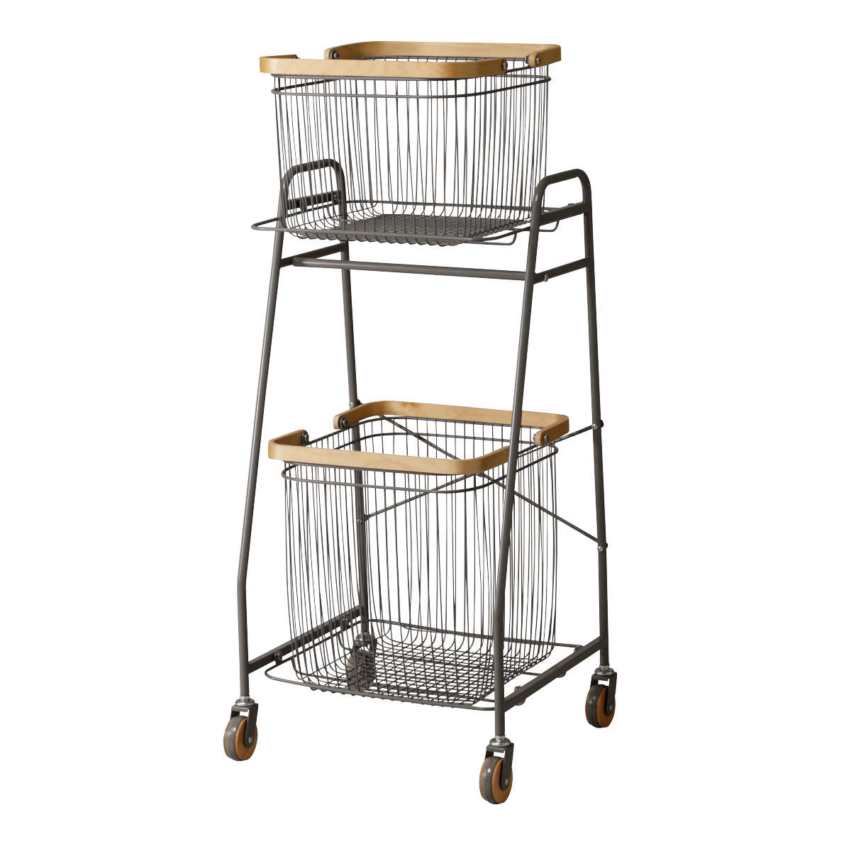 異なるサイズのバスケットが使いやすいランドリーワゴン