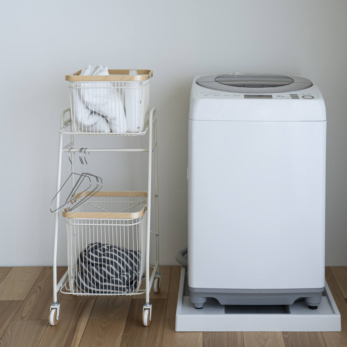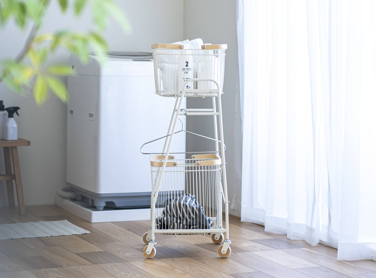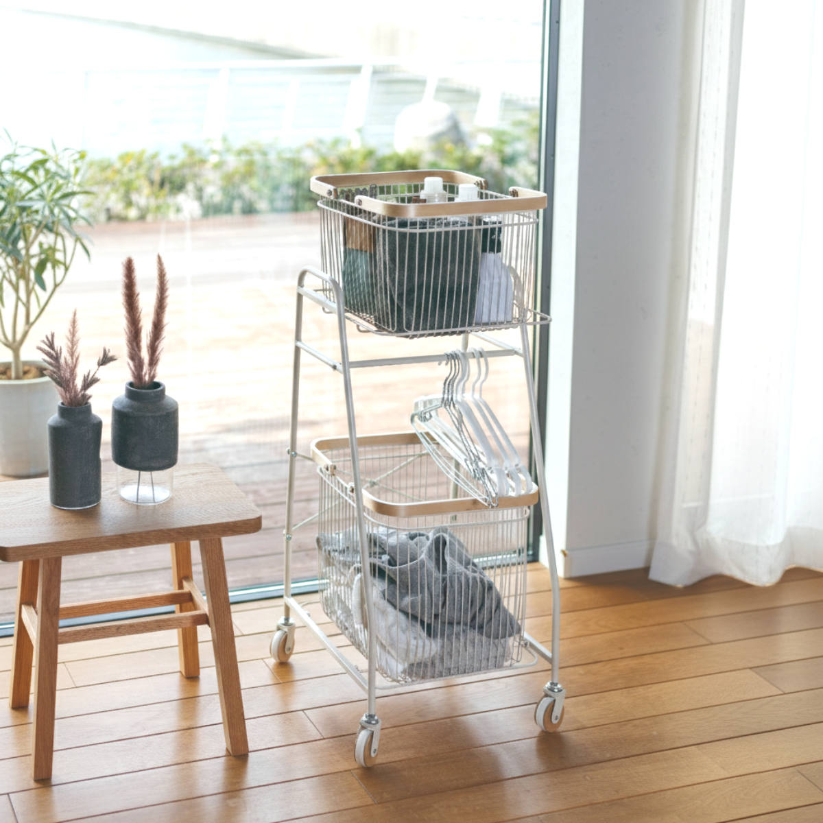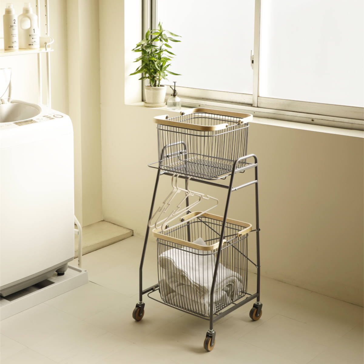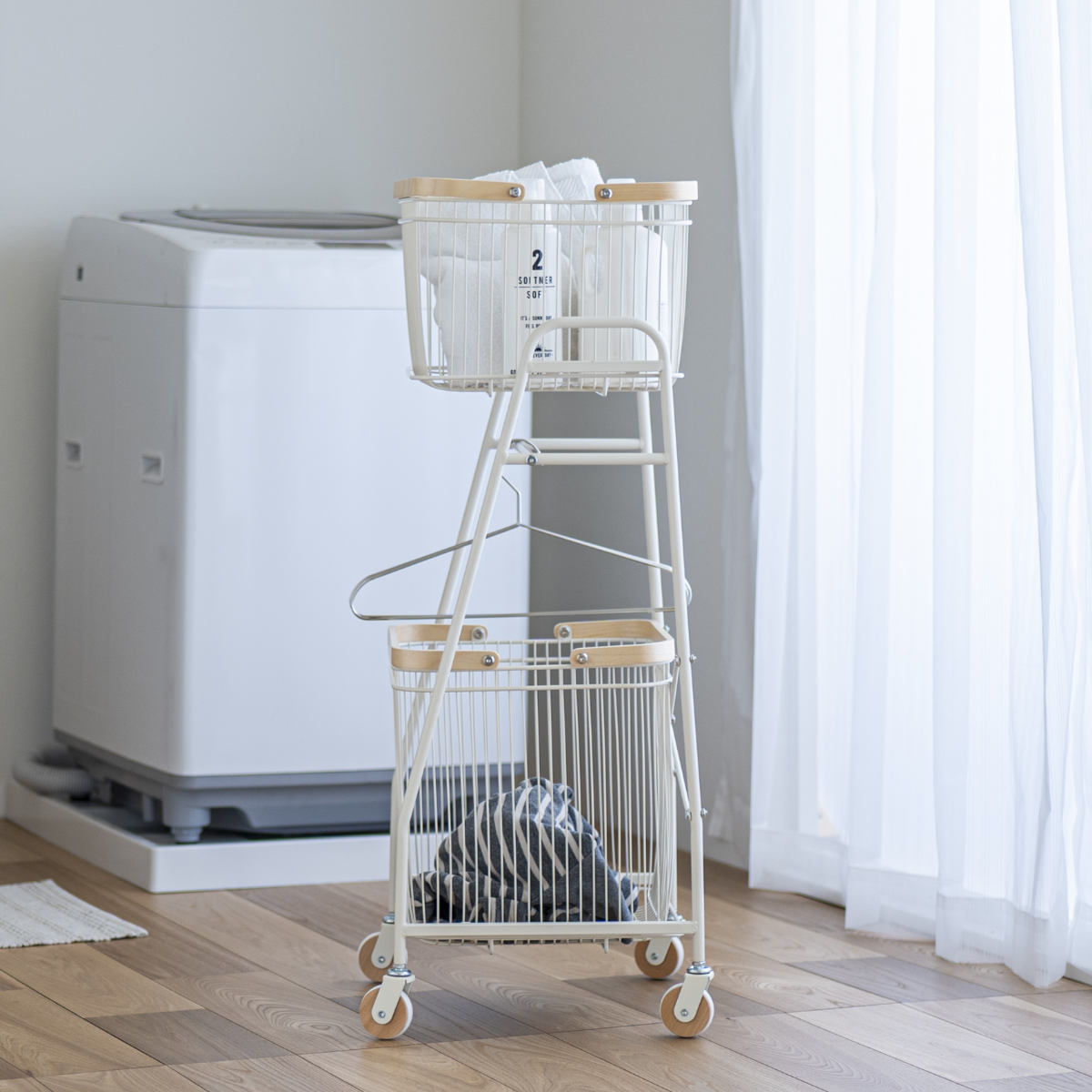 異なるサイズのバスケットが使いやすいランドリーワゴン