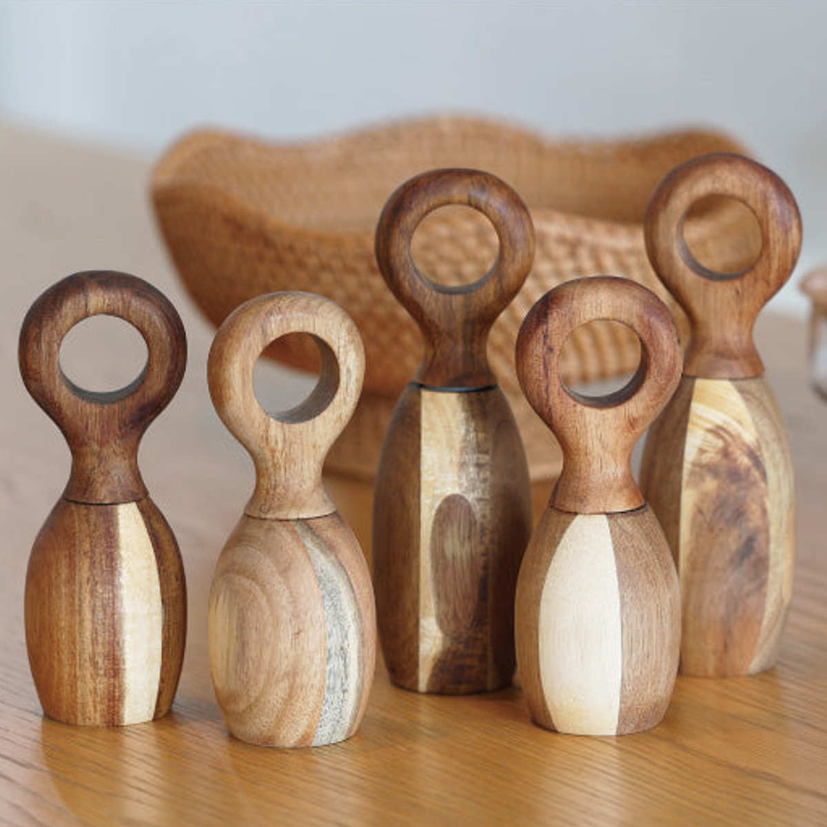 美しい木目と深みのある色合いが魅力のアカシア材を使用。同じものがひとつとしてない自然の表情が、使うたびに愛着を育てます。キッチンに置くだけで、温もりあるアクセントに。