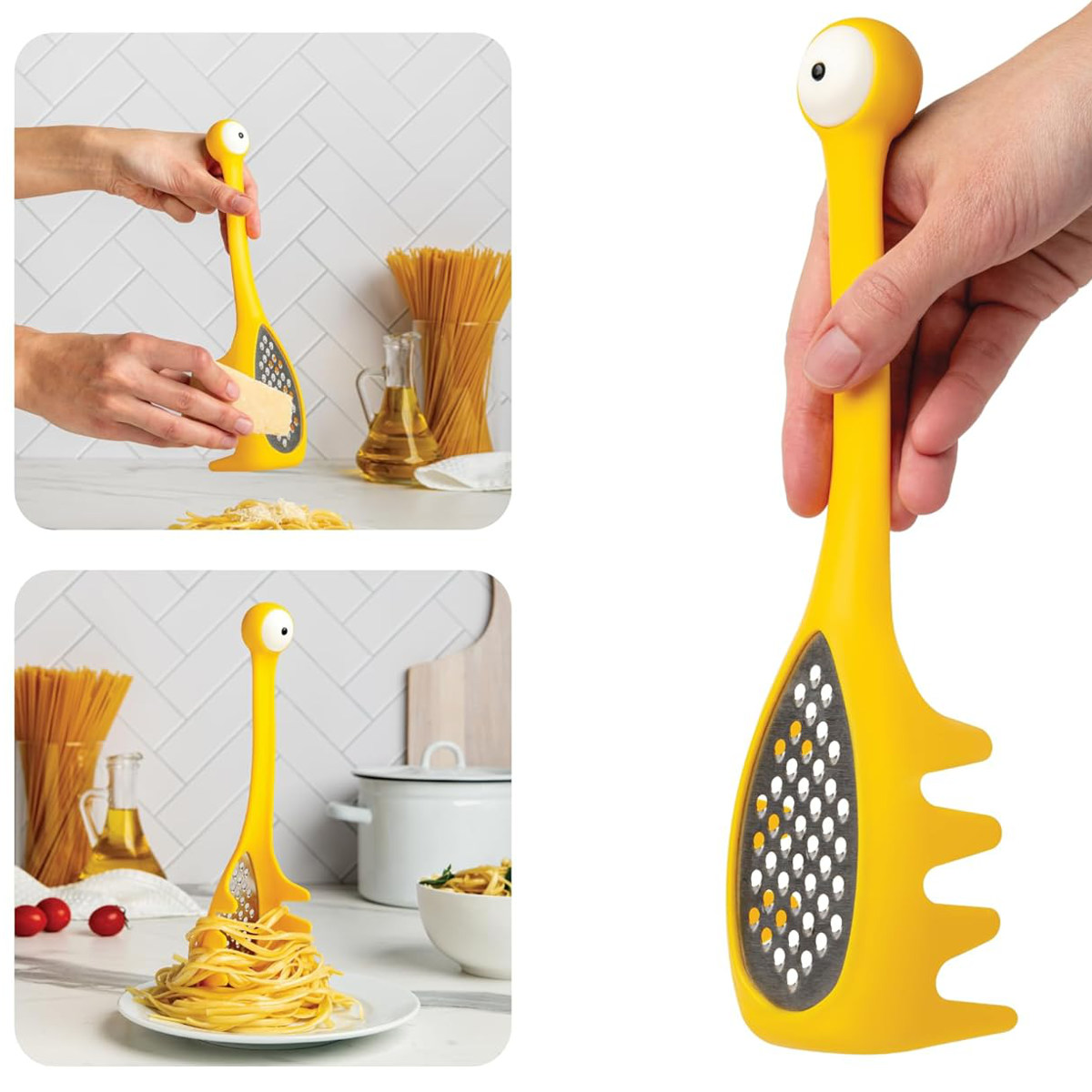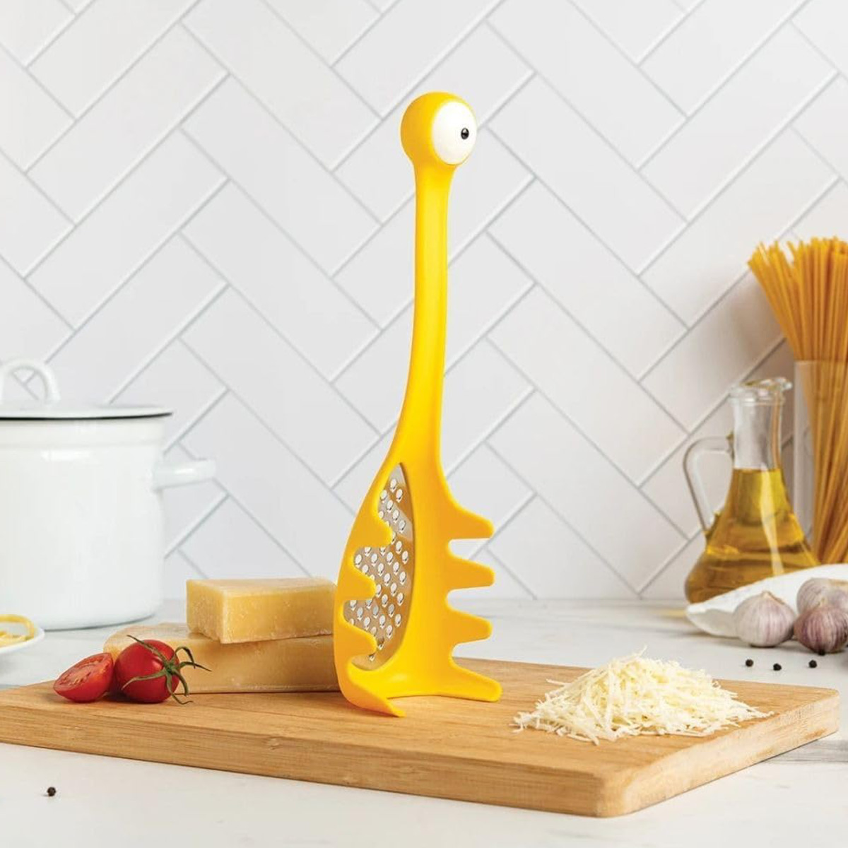 食卓やキッチンがより楽しくなる、遊び心溢れるモンスターのパスタグッズです。チーズおろし(グレーター)&とパスタサーバーの2役をこなし、調理や後片付けがスムーズになります。