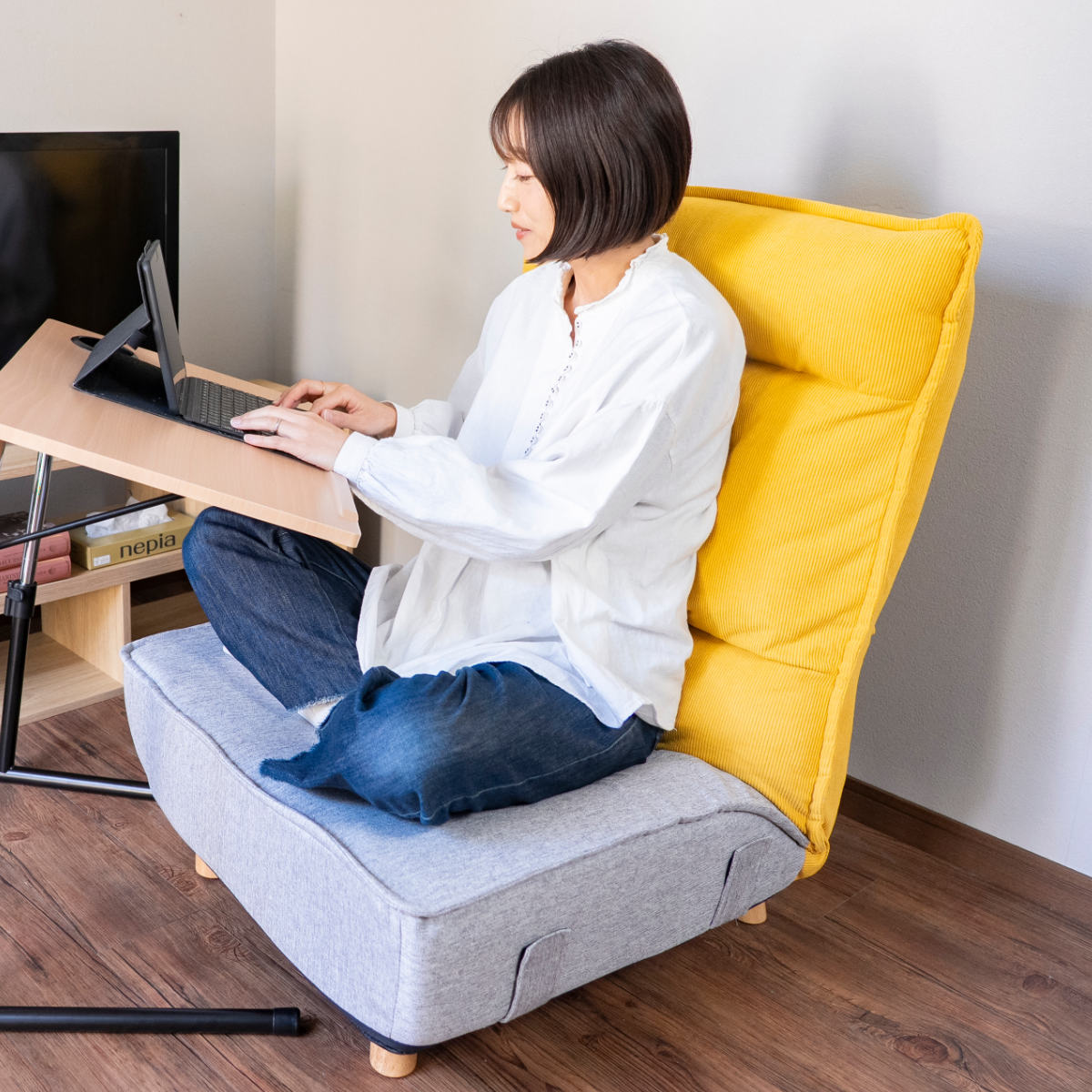 42段階の細かなリクライニング機能付きあぐらがかける座椅子