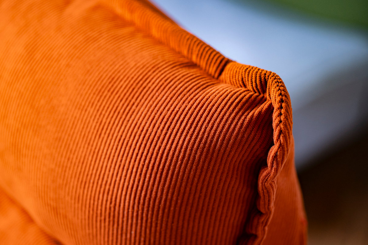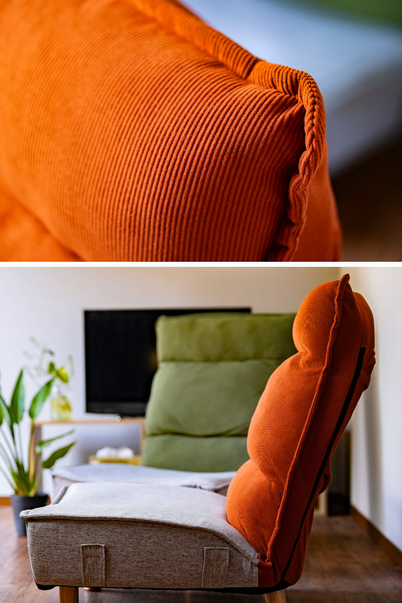 背もたれには触り心地の良いコーデュロイ生地を、座面には耐久性のあるダリアン生地を採用。異なる素材を使い分けることで、見た目の表情と実用性を両立しています。季節を問わず使いやすく、空間にもなじみやすい仕上がりです。