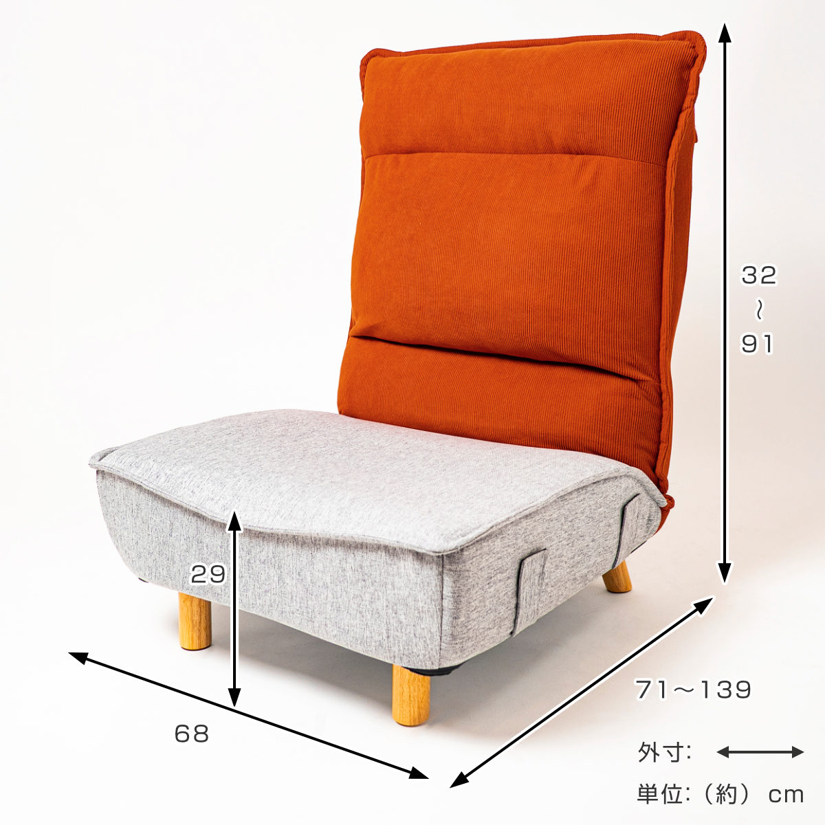 - 約幅68×奥行71~139×高さ32~91cm