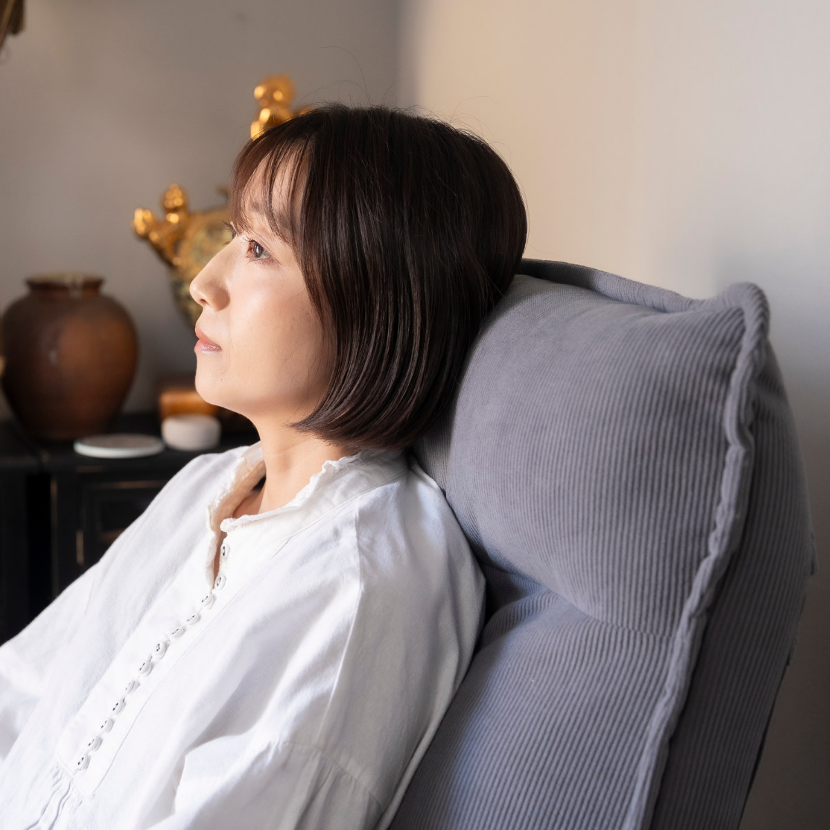 背もたれは42段階、ヘッド部分は14段階の細かなリクライニングが可能。日本製ギアを採用し、体格やシーンに合わせて理想の角度に調整できます。頭までしっかり支える設計で、読書やテレビ視聴、お昼寝まで快適に過ごせます。