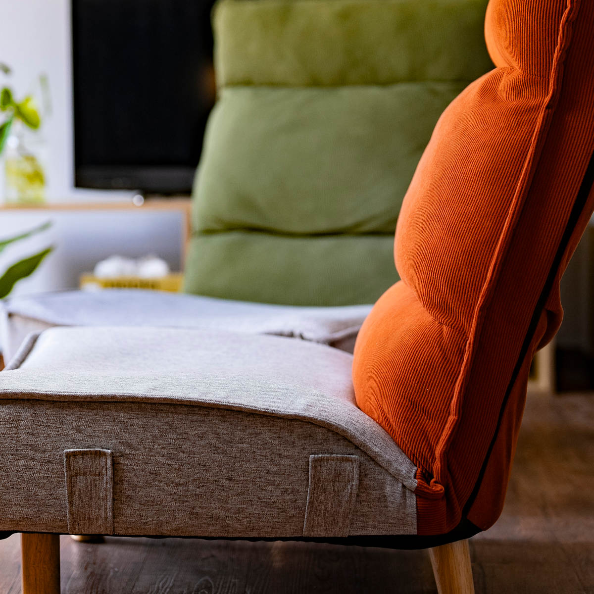 連結ベルトテープが付いているので、2台を並べてソファのようなレイアウトも可能です。1人用としてはもちろん、家族で使いたいときや来客時にも柔軟に対応できます。暮らしや間取りに合わせて使い方を変えられるのが嬉しいポイントです。