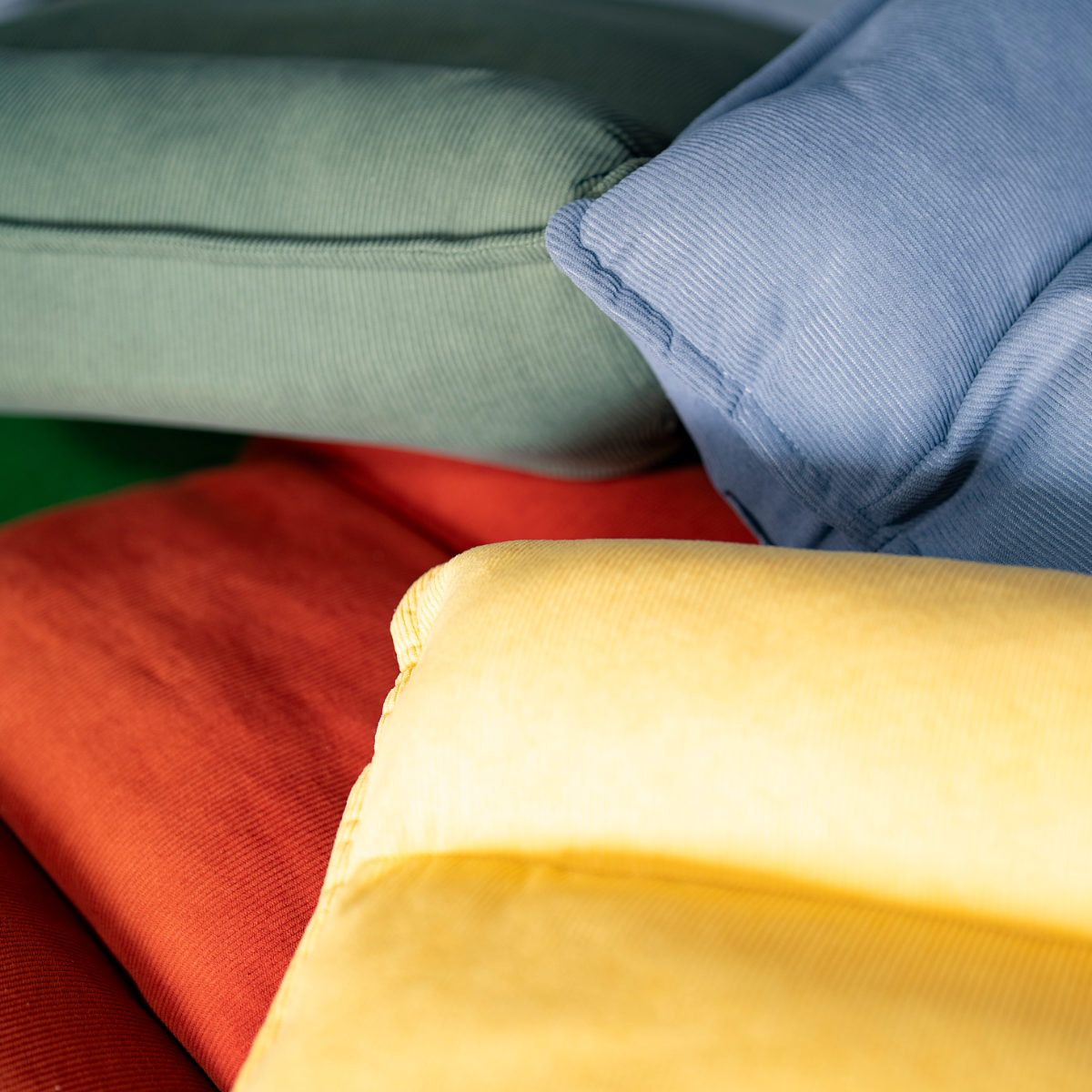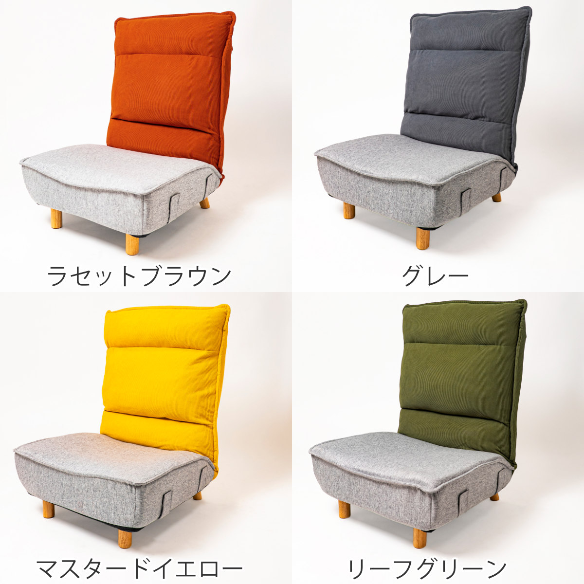 自然になじむリーフグリーン、使いやすいグレー、はっきりとした色合いのラセットブラウン、空間を明るくするマスタードイエロー。やさしい色味からアクセントカラーまで選べる4色展開です。