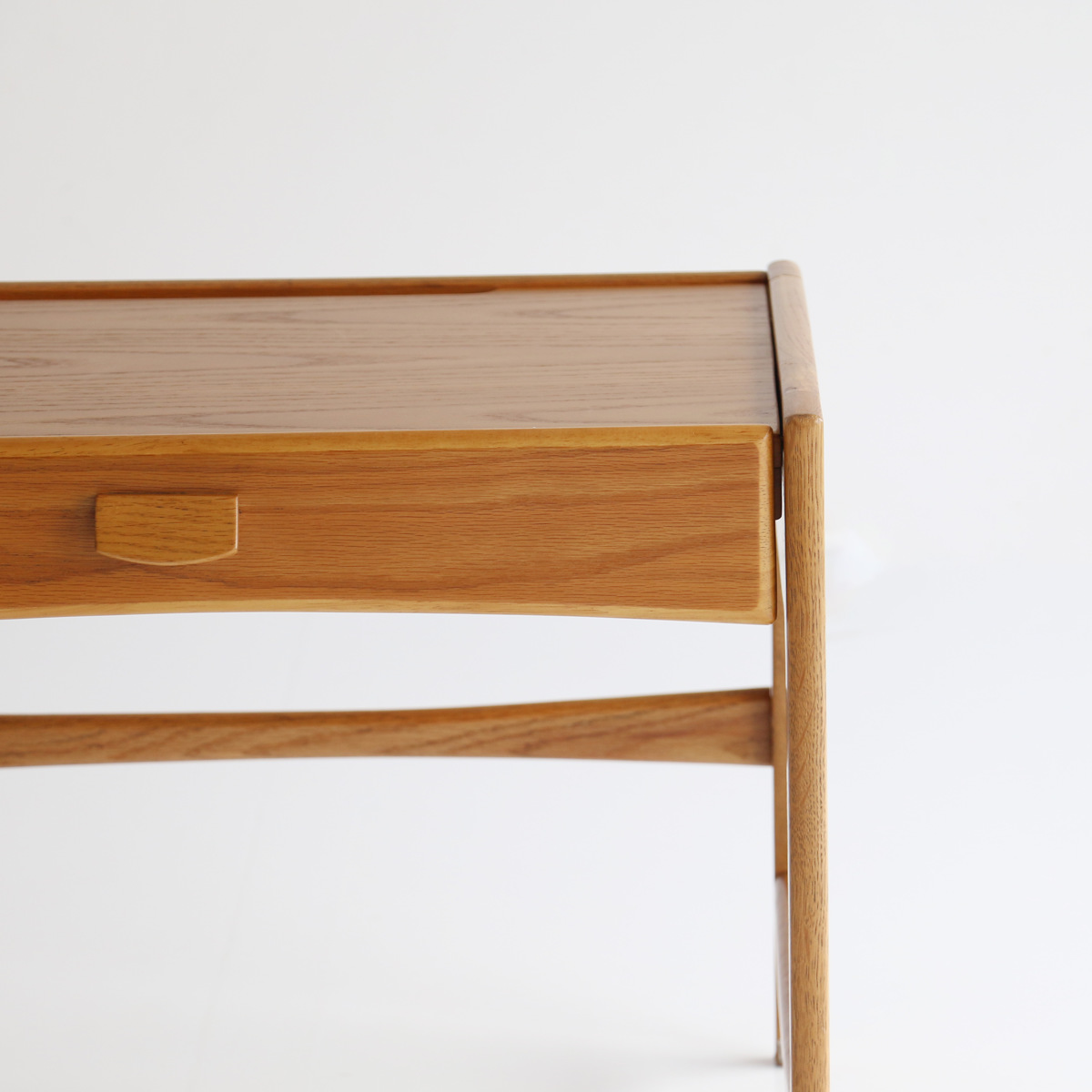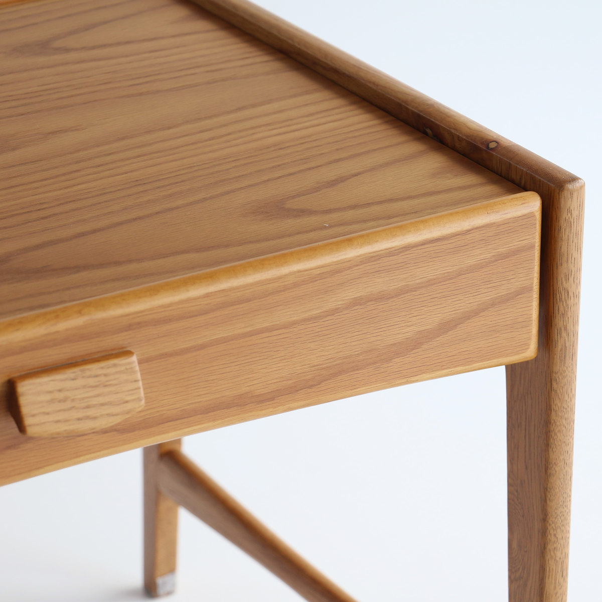 北欧ビンテージのエッセンスを取り入れた落ち着いた佇まい。のデザインです。小口の面取りや桟の意匠など細部までこだわり、リビングに置いても美しく映える本格仕様の学習机です。