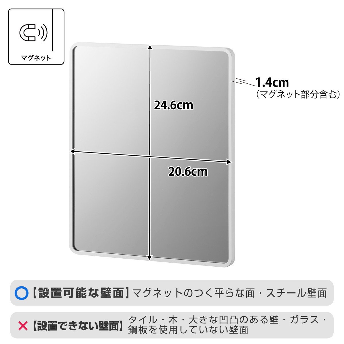 | 備考 | 【使用できる面】 マグネットがつく凹凸のない平らな面、スチール面 |