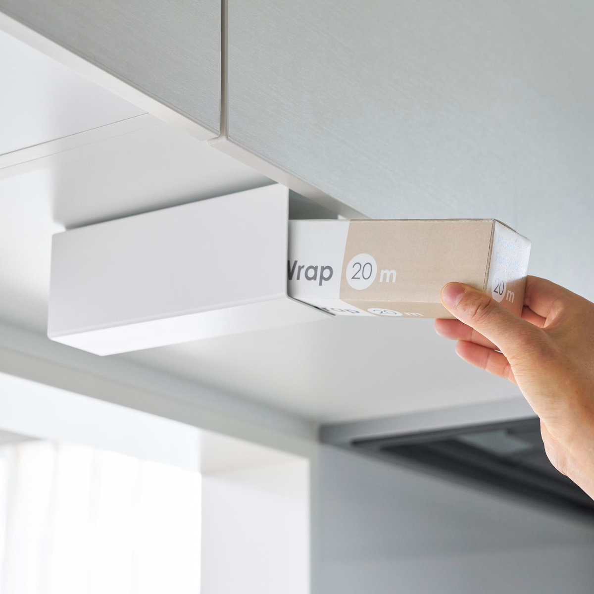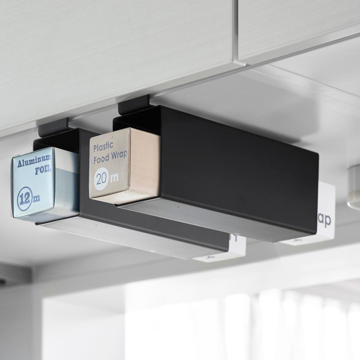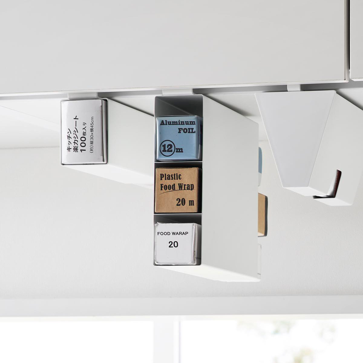 横に並べて設置すれば、ラップやアルミホイルを種類ごとに分けてまとめて収納でき、さらに使いやすくなります。戸棚下のスペースを無駄なく活用でき、見た目もすっきり整います。