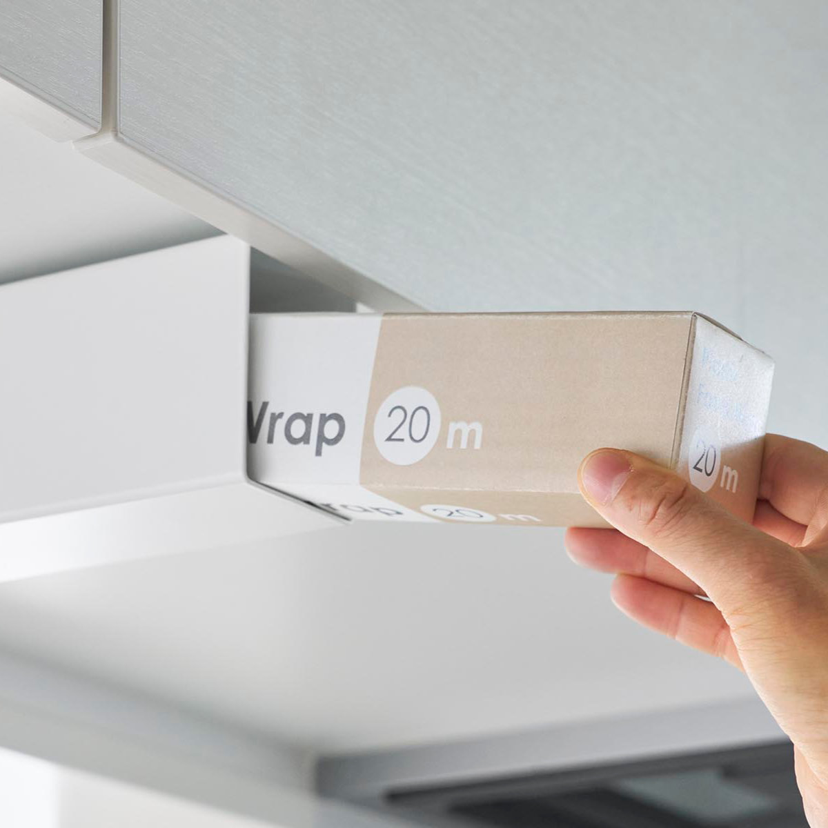 戸棚下に差し込むだけで設置できるラップホルダーです。
