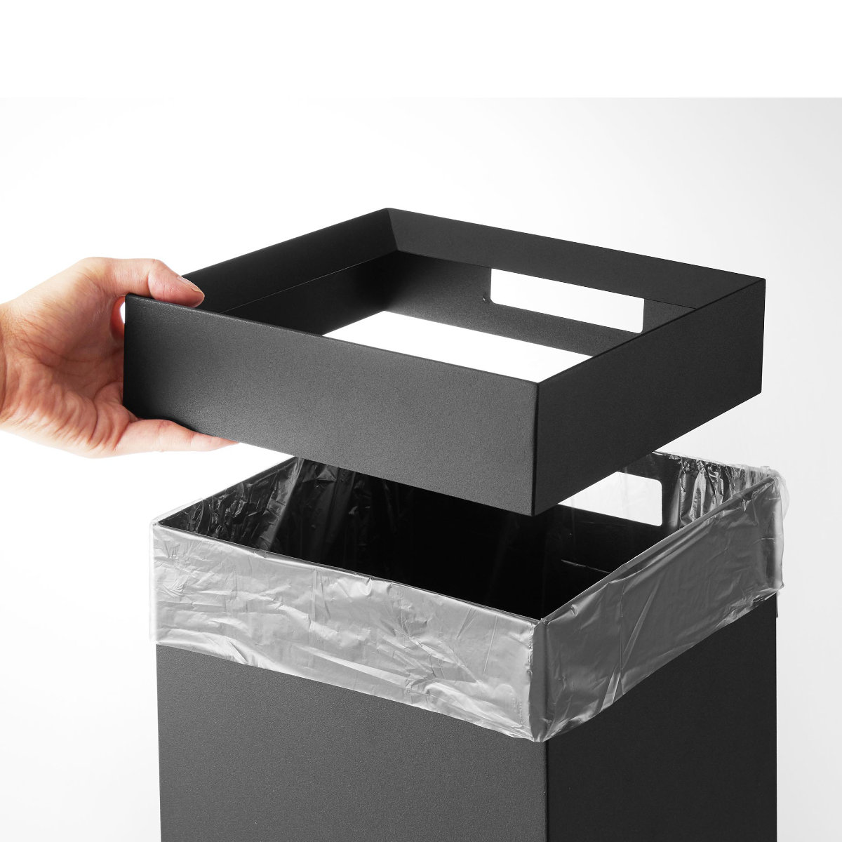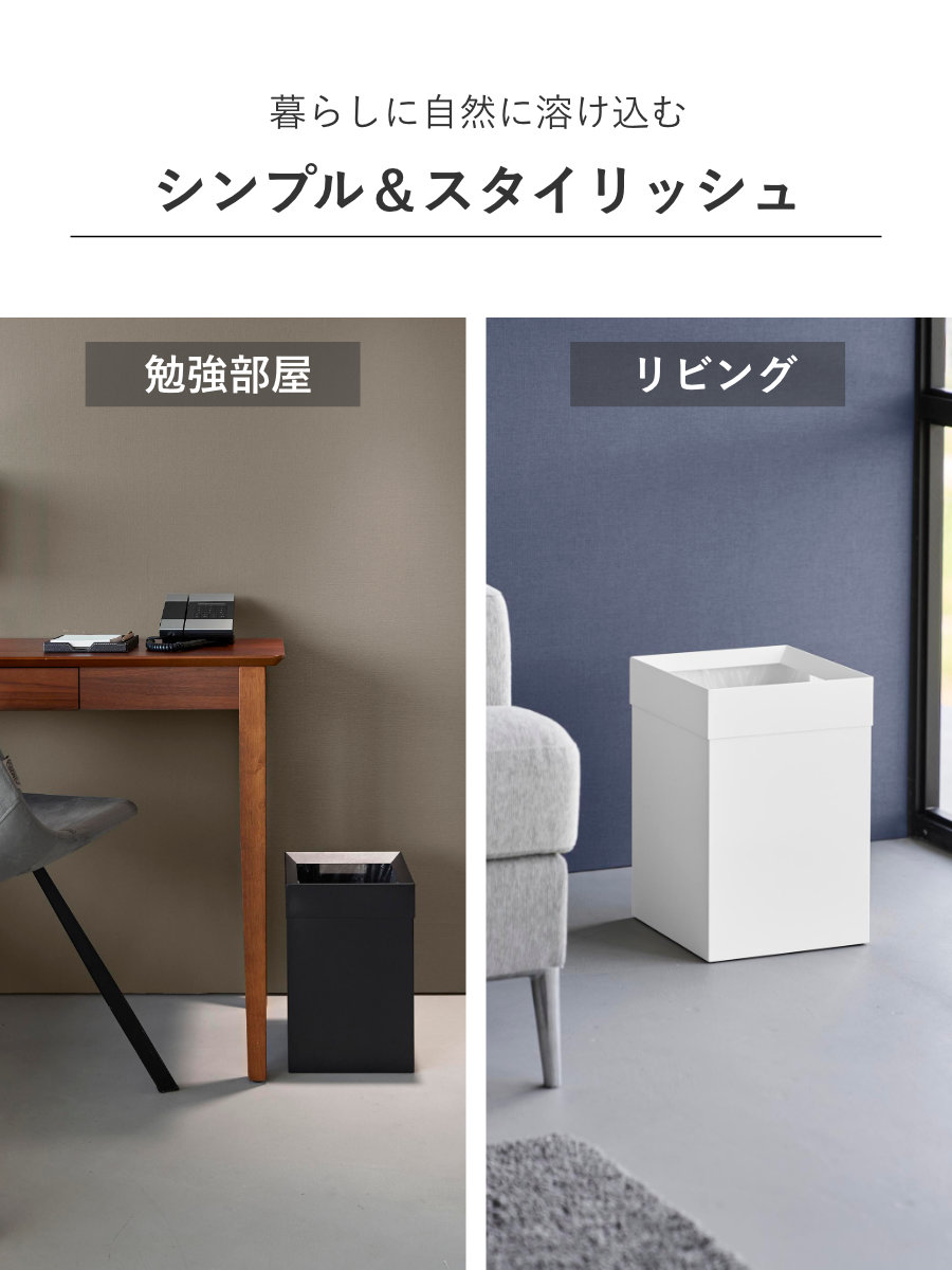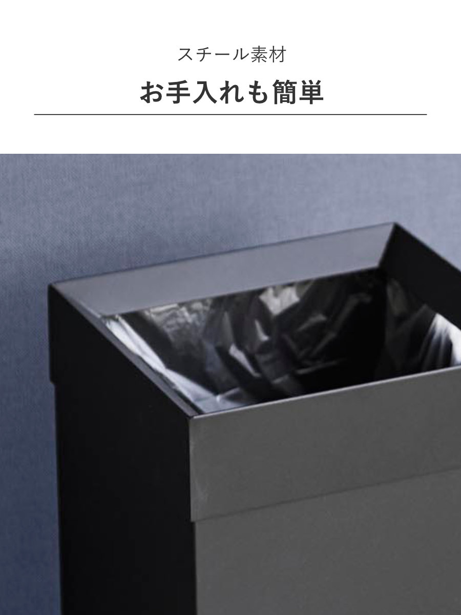 見た目がきれいに整うため、リビングやキッチン、オフィスなど、生活感を出したくない場所でも安心して使えます。ゴミ袋の取り付けも簡単で、使い勝手とデザイン性を両立した設計です。