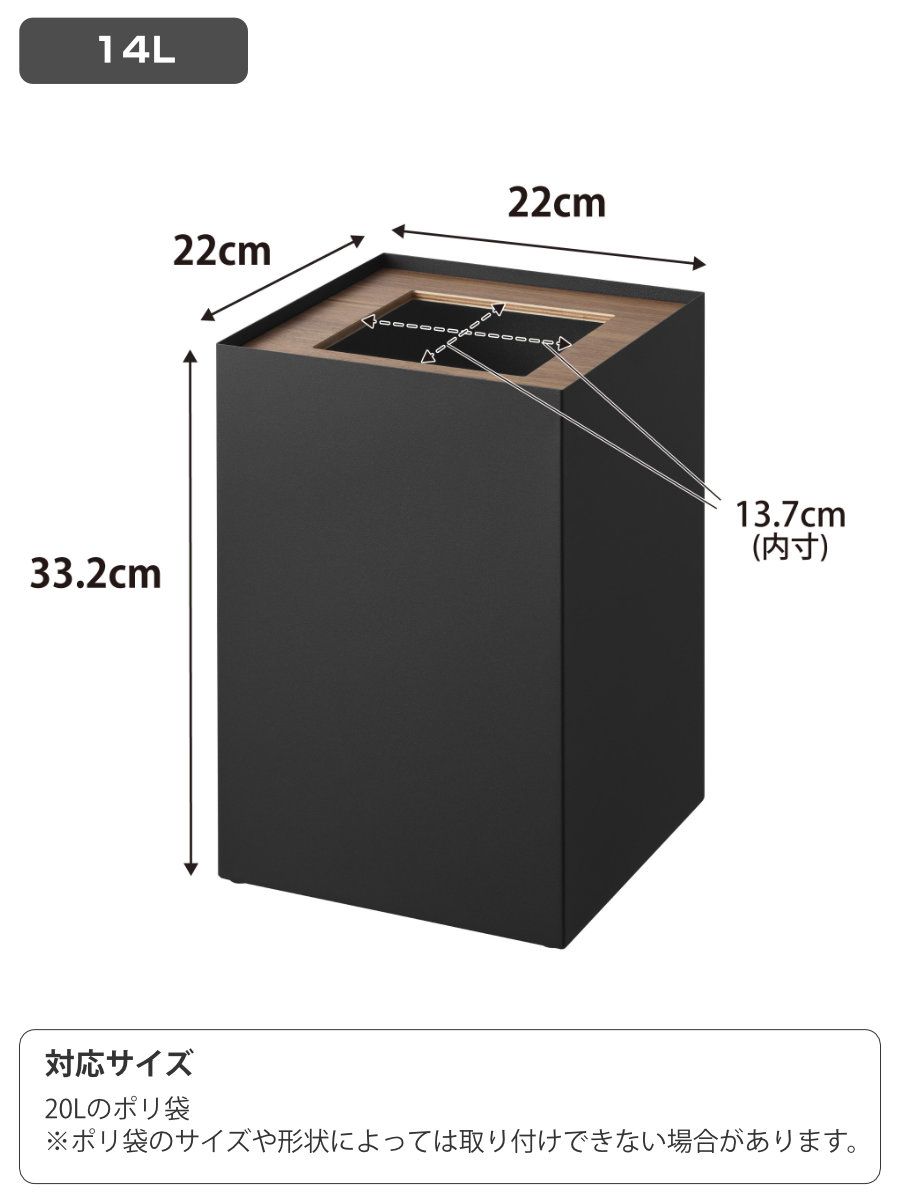 | サイズ | 約 幅22×奥行22×高さ33.2(cm) フタ開口部:幅13.7×奥行13.7cm |