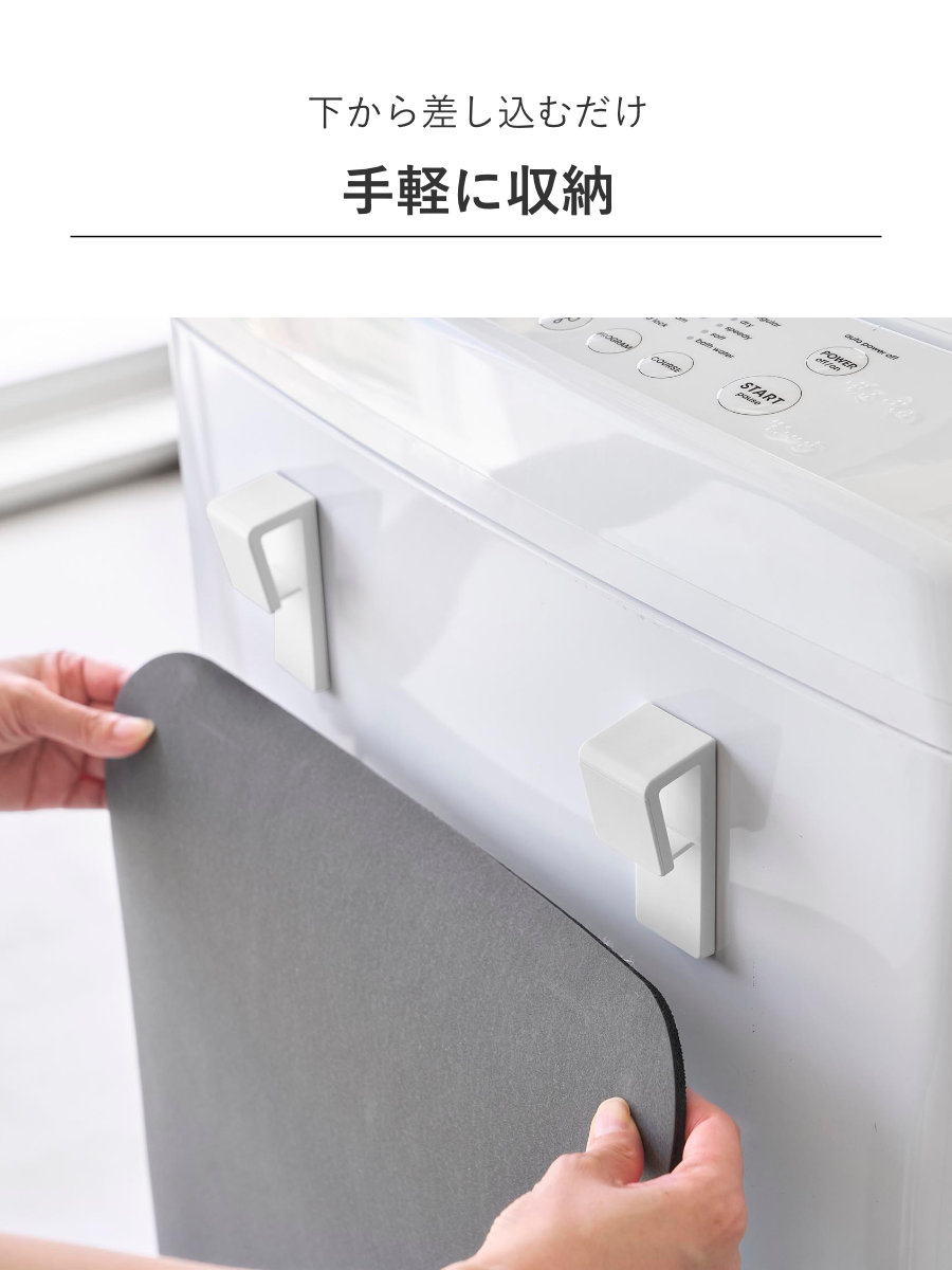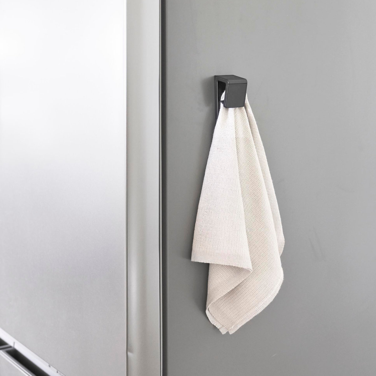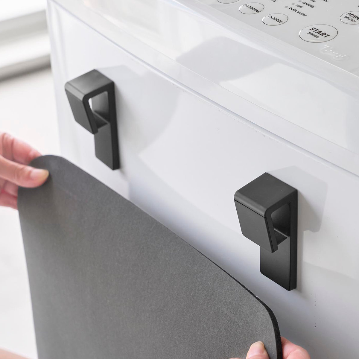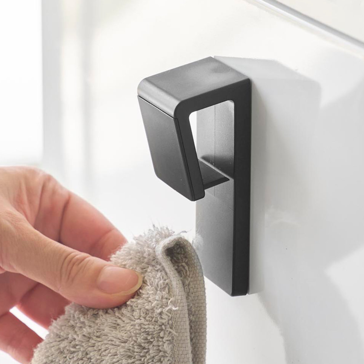 バスマットやバスタオルの収納はもちろん、キッチンではクロスや布巾、タオル掛けとしても活躍します。マグネット式なので冷蔵庫や洗濯機、浴室の壁面などに簡単に取り付けられ、使いたい場所にすぐ設置できるのもポイント。