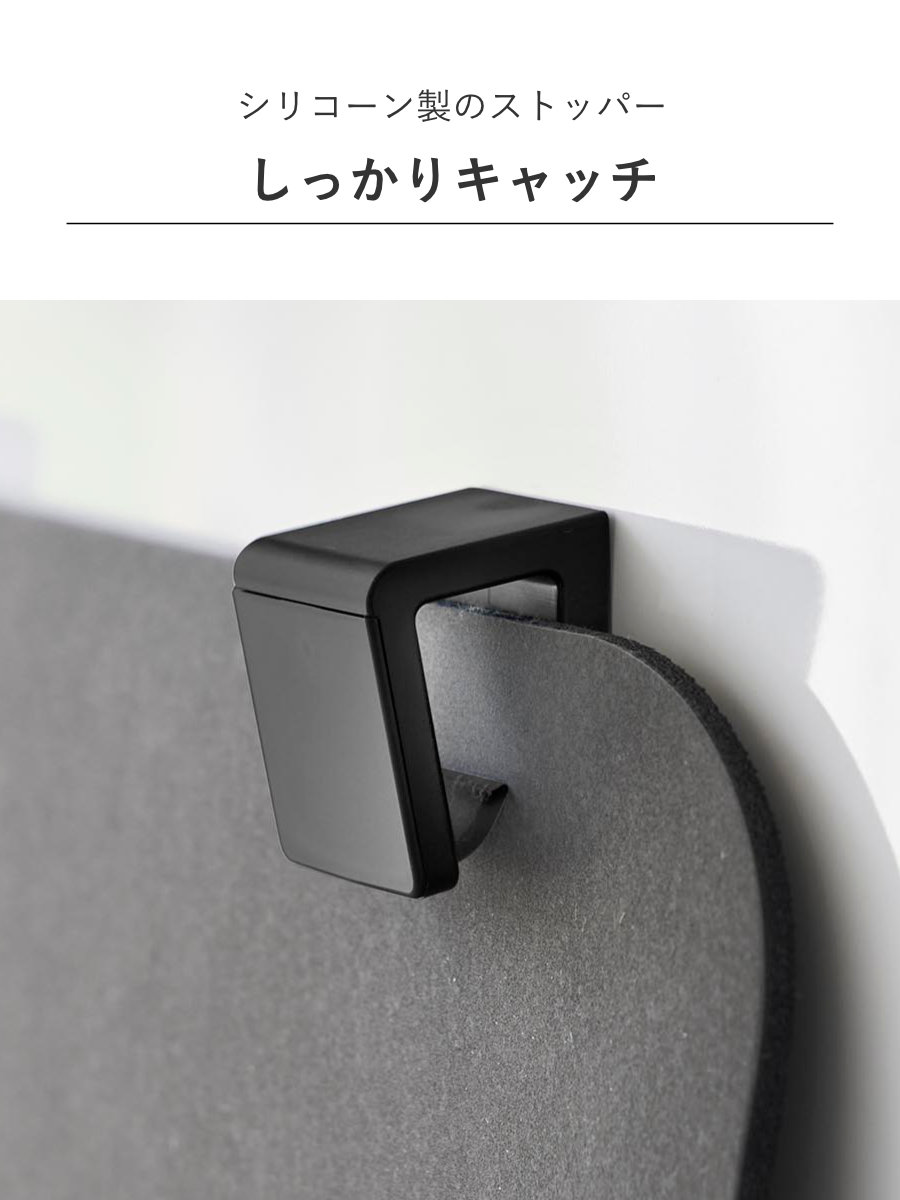 シリコーン製のストッパーがバスマットをしっかりキャッチし、安定して収納できます。やわらかく弾力のあるシリコーン素材がマットをやさしく挟み込み、ズレや落下を防止します。