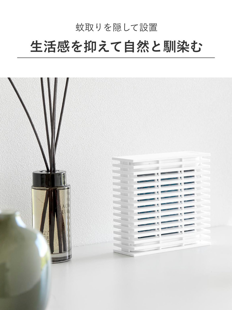 置き型(非加熱式)蚊取りを隠して設置できる、置き型室内蚊取りカバーです。シンプルなデザインで、蚊取りの効果はそのままに、生活感を抑えて玄関やリビングなどの空間に自然に馴染みます。