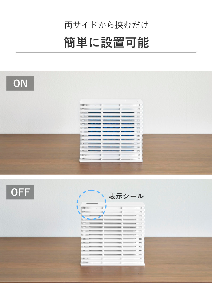 置き型蚊取りを両サイドから挟むだけで、工具不要で簡単に設置できます。