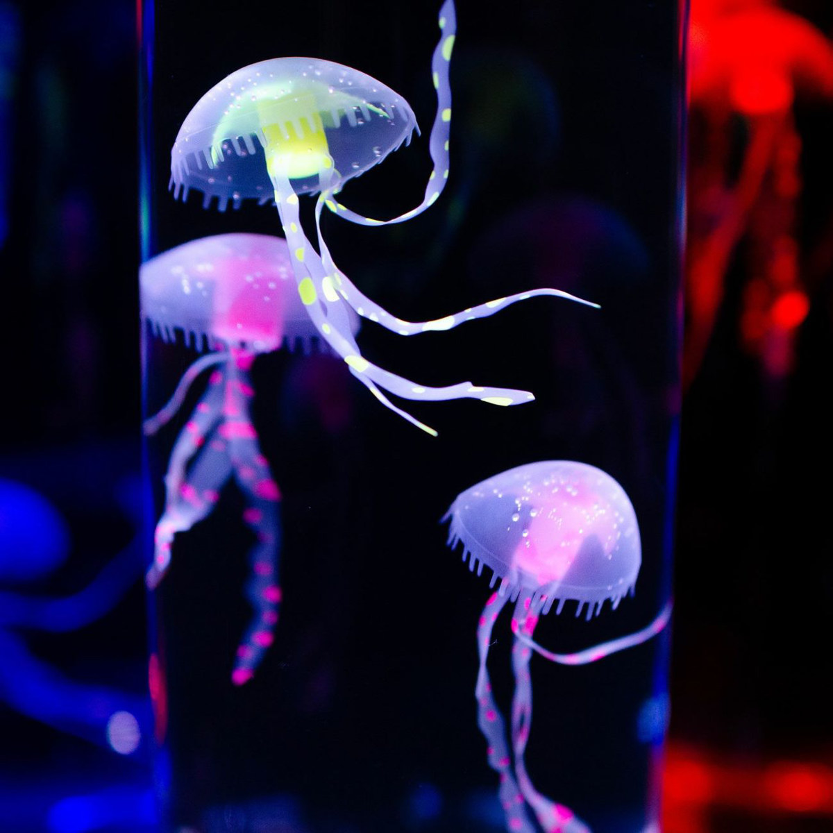 ●ゆらゆら泳ぐクラゲと光に包まれて癒される、ジェリーフィッシュランプです。