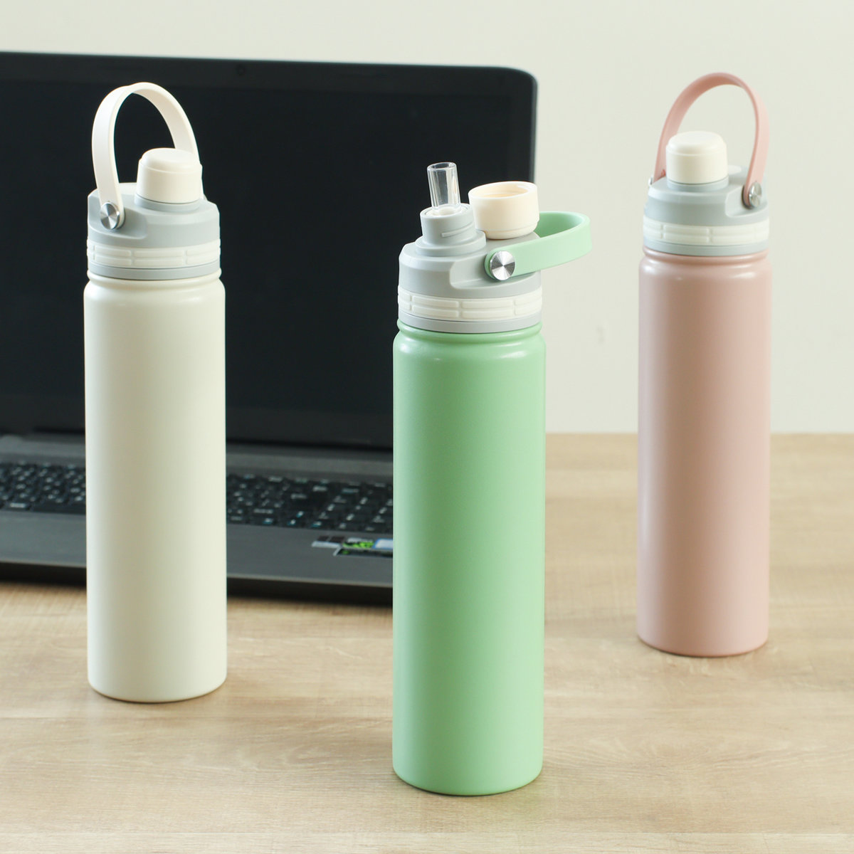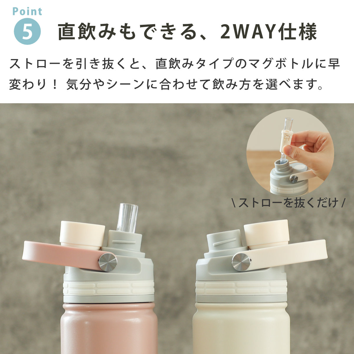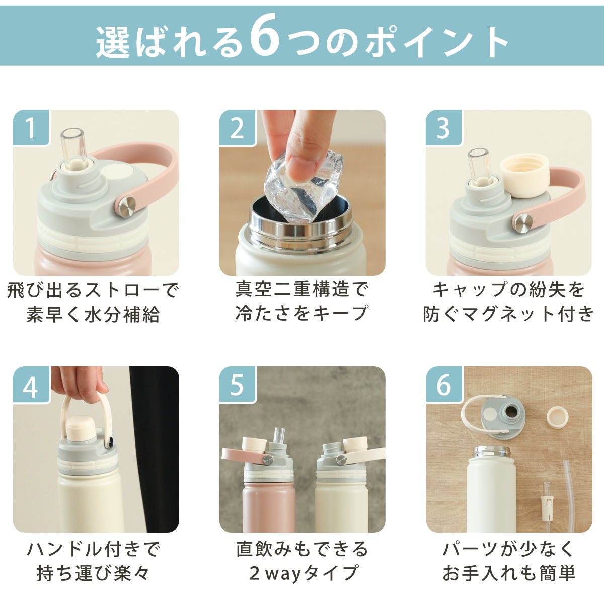 いつでもどこでも気軽に飲める、ハンドル付きストローボトル