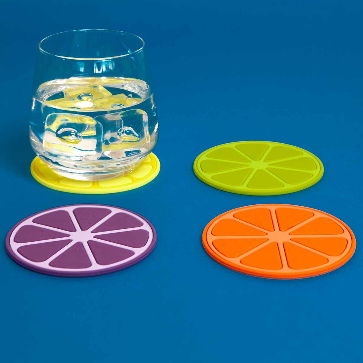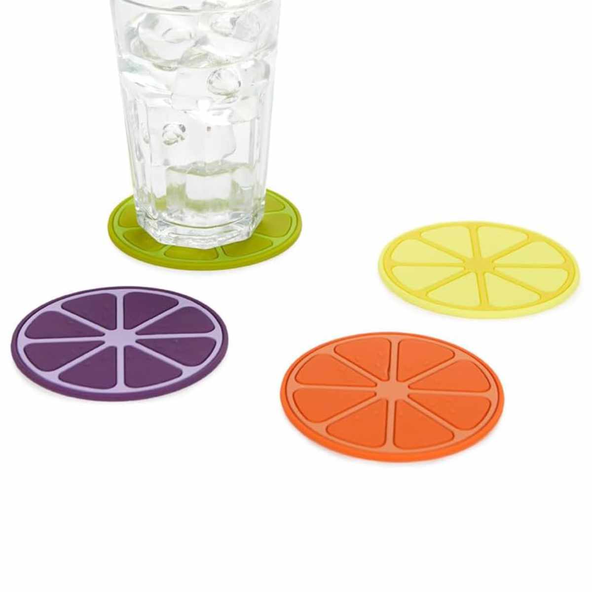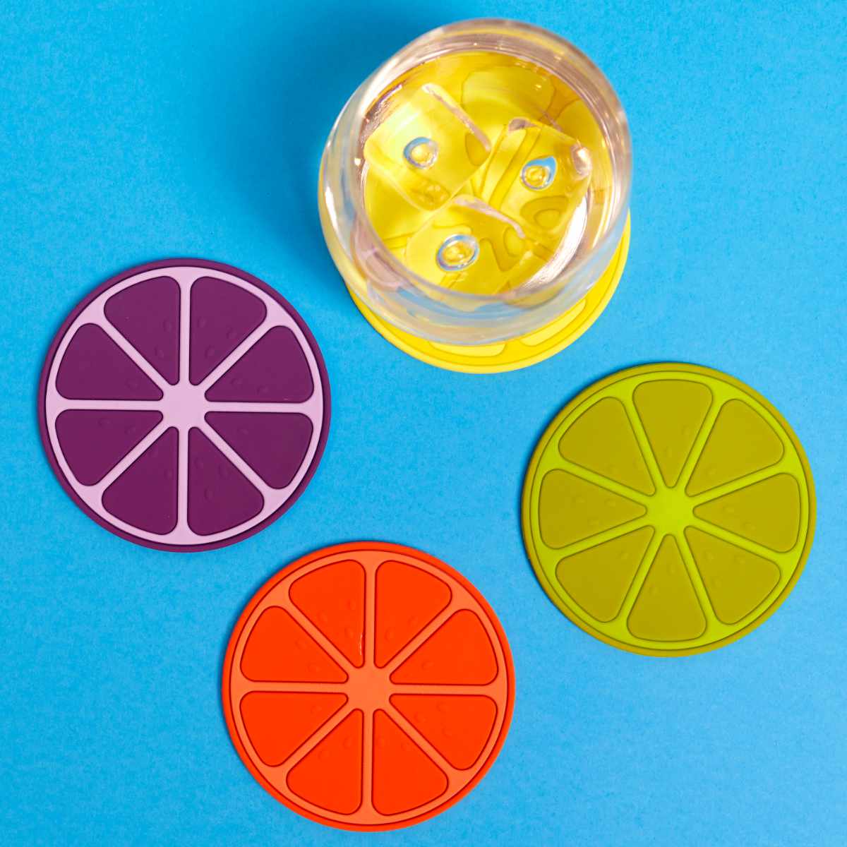 ●フルーツの輪切りをモチーフにした、遊び心あふれるシリコン製コースターです。