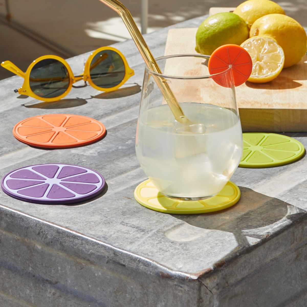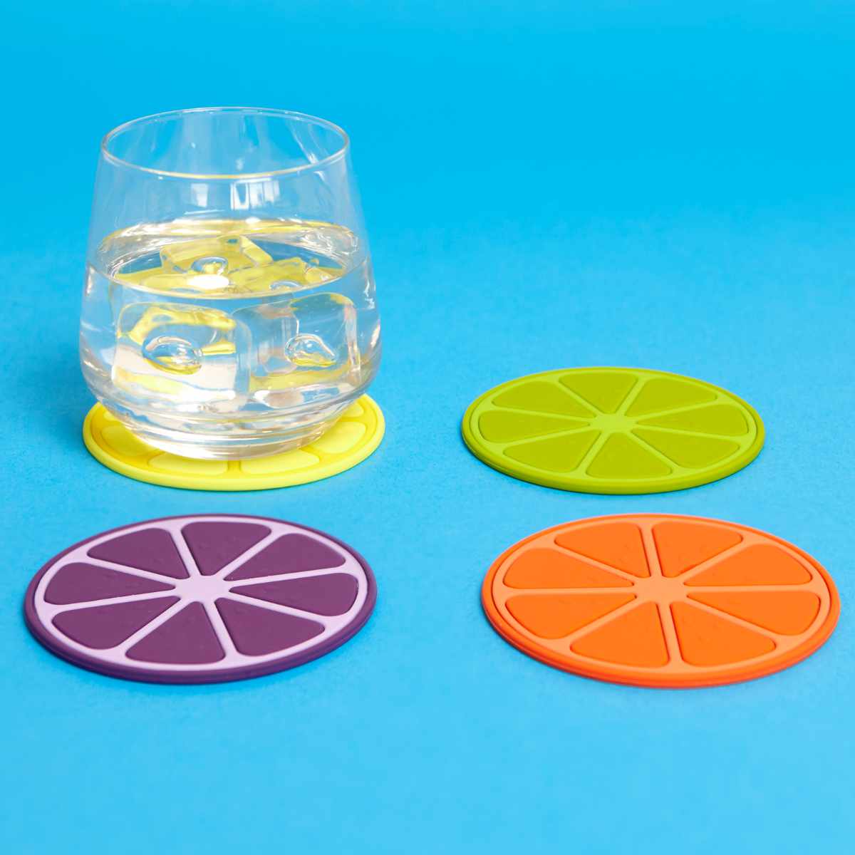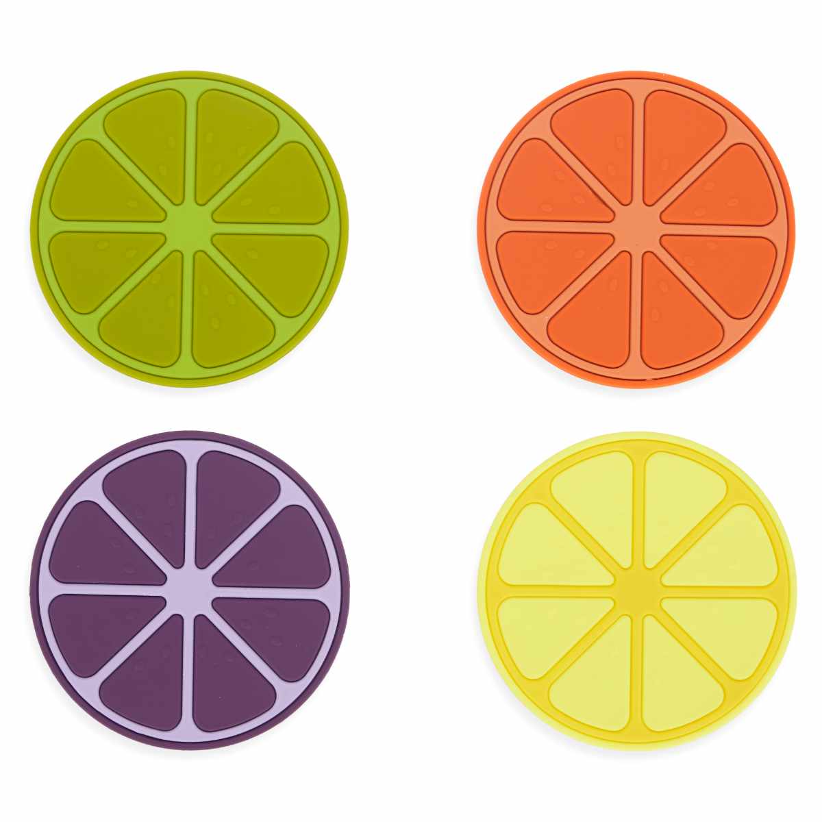 ●フルーツの輪切りをモチーフにした、遊び心あふれるシリコン製コースターです。