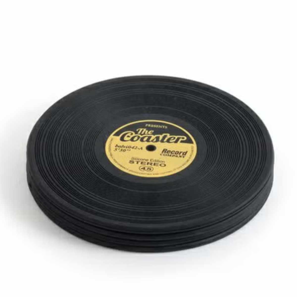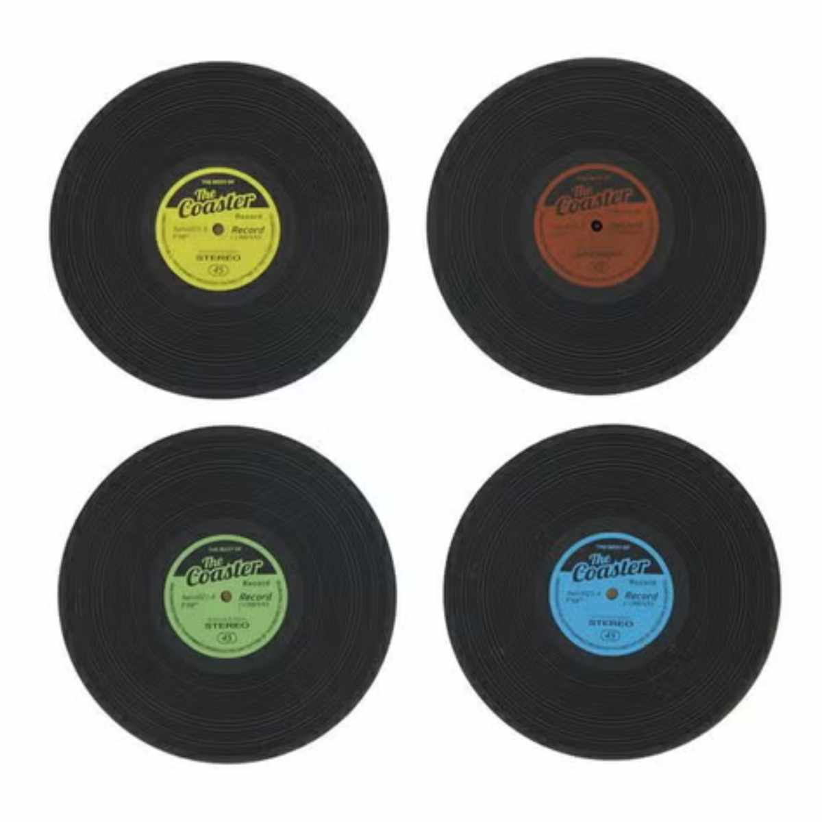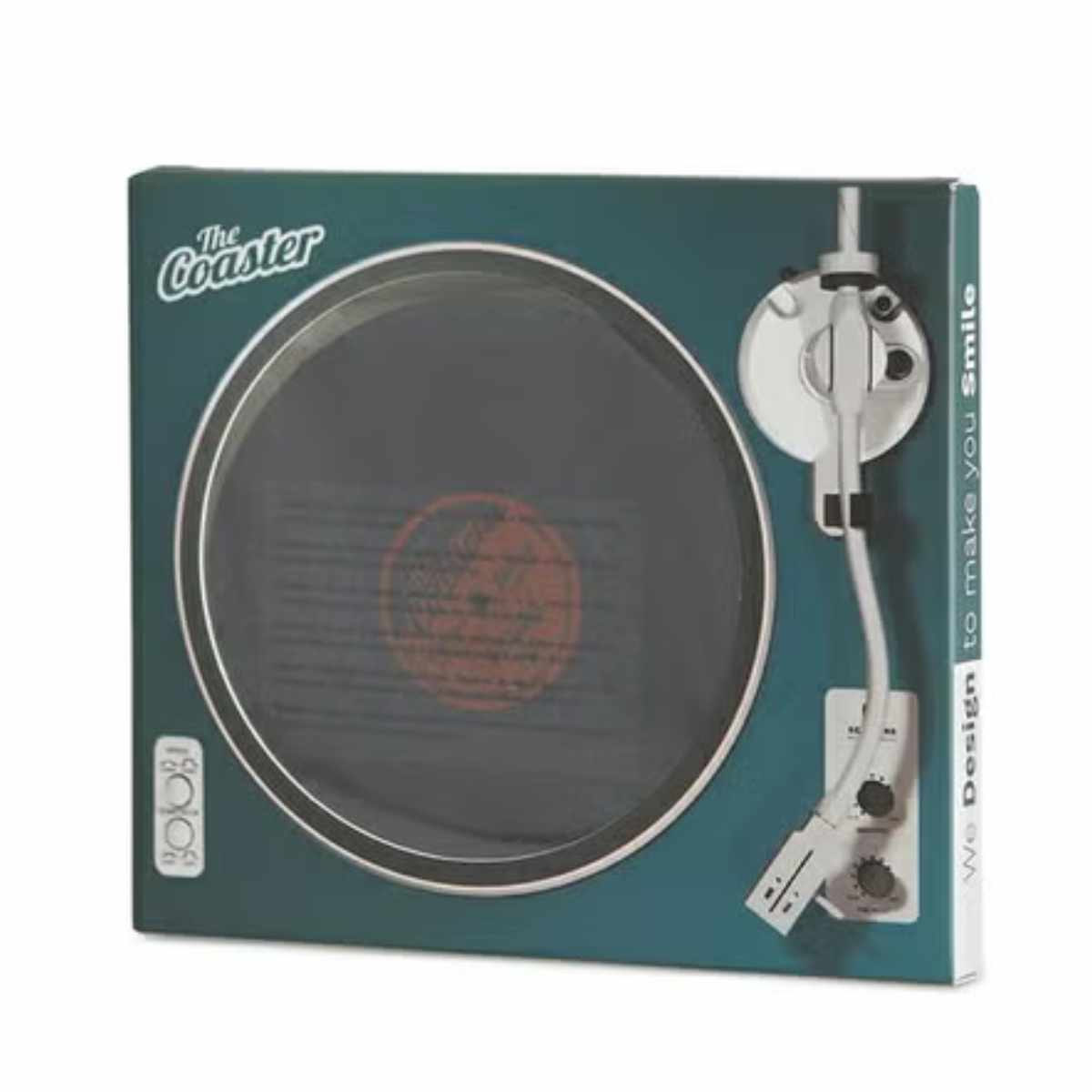レトロなレコードデザインが目を引くコースターです。遊び心のあるデザインでテーブルを楽しく彩ります。