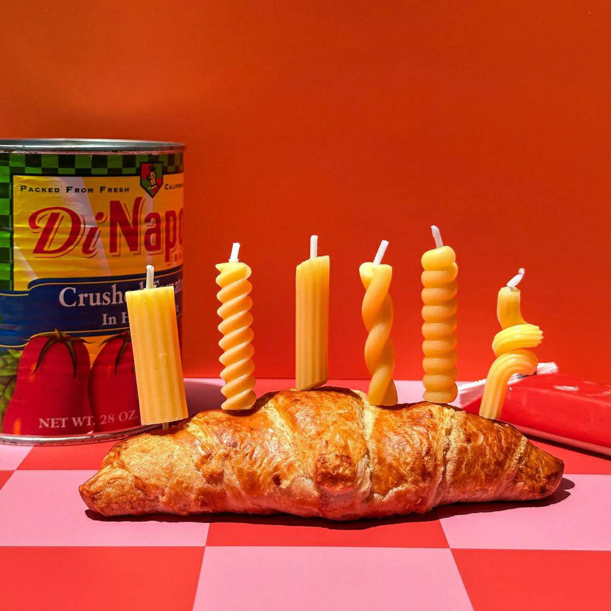 ケーキの上にパスタ!?ユニークなキャンドルセット