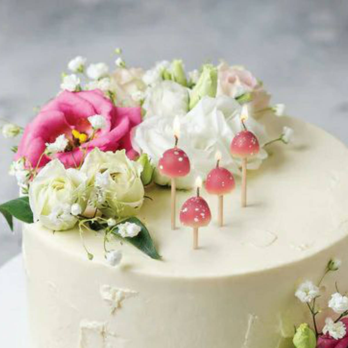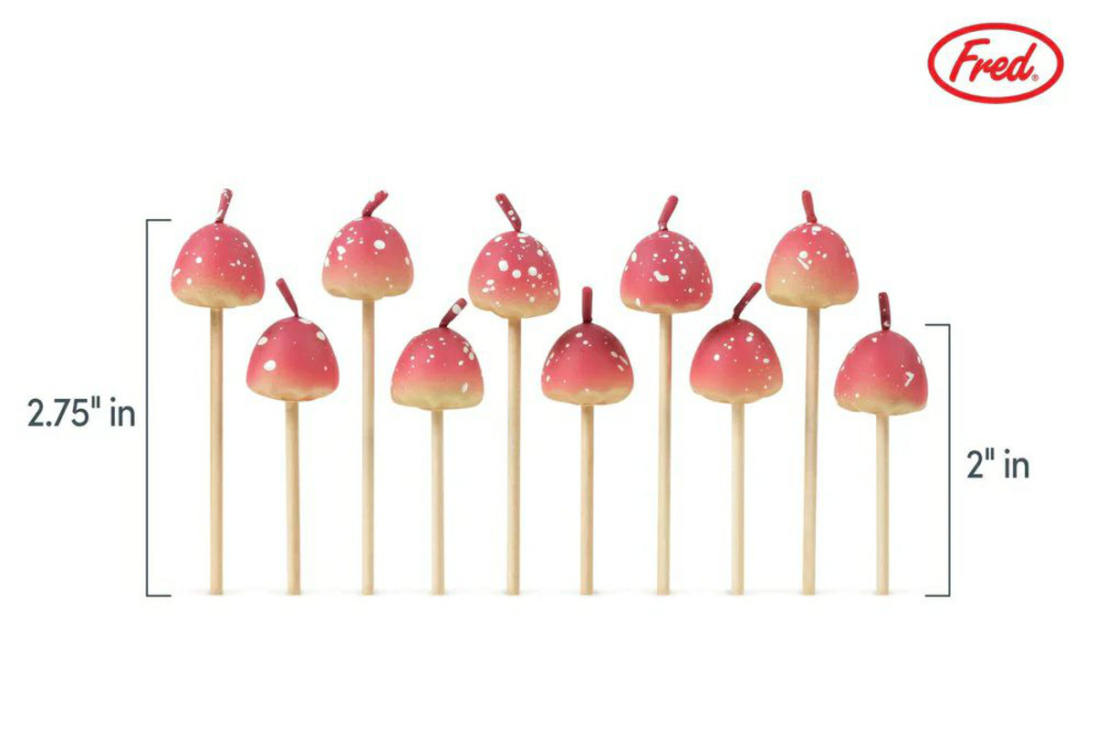 大小さまざまなきのこが、にょきっと生えるキャンドルセット。ケーキの上に立てるだけで、そこはまるで絵本の中の小さな森。リアルさの中に、ほんの少し毒っ気を感じるデザイン。甘くなりすぎない可愛さで、大人も子どももワクワクするパーティーシーンを作ります。