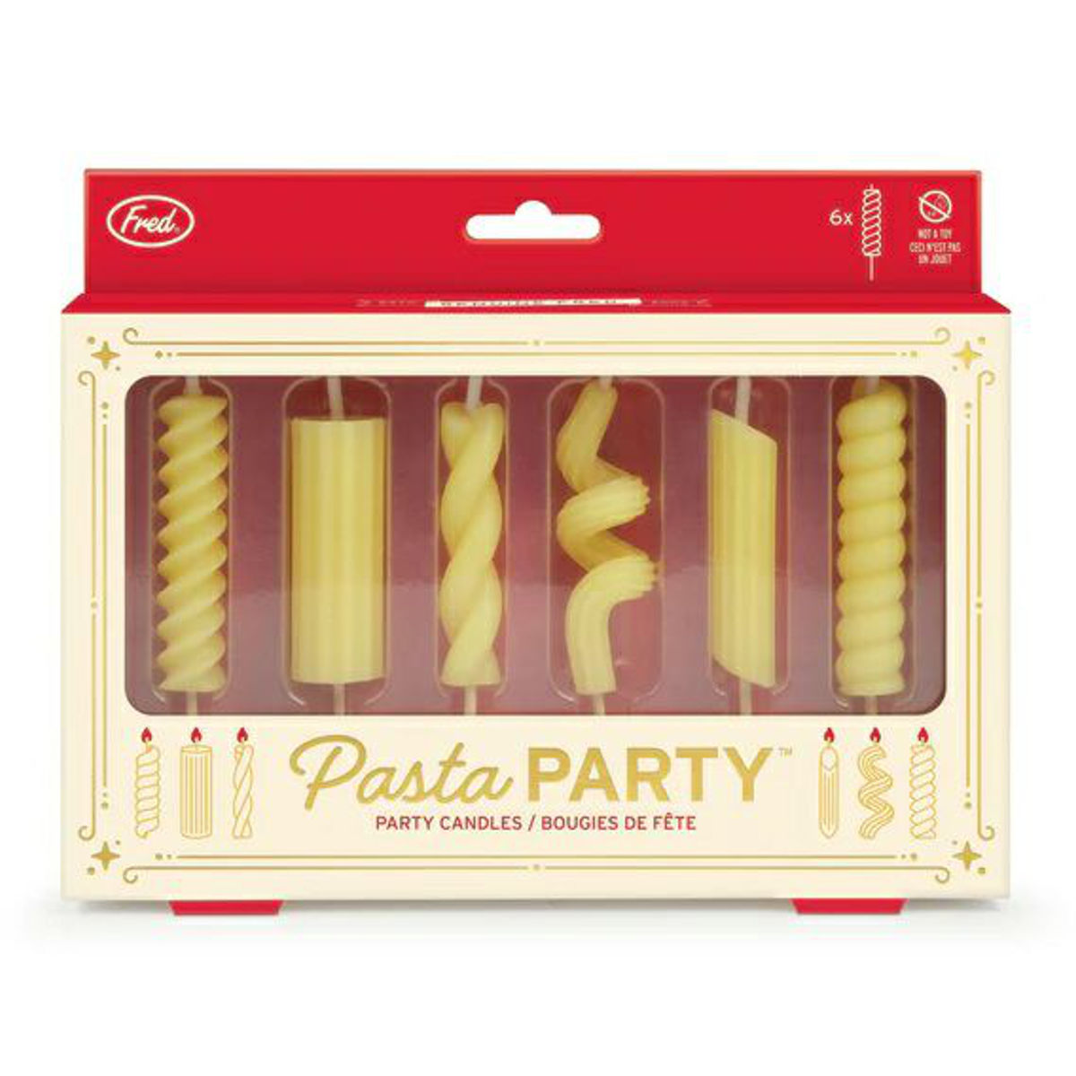 並べてみると、まるで乾燥パスタそのもの。くるくる、ひらひら、形の違う6種類のパスタデザイン入り。火を灯す前から、テーブルに笑顔と会話が広がります。