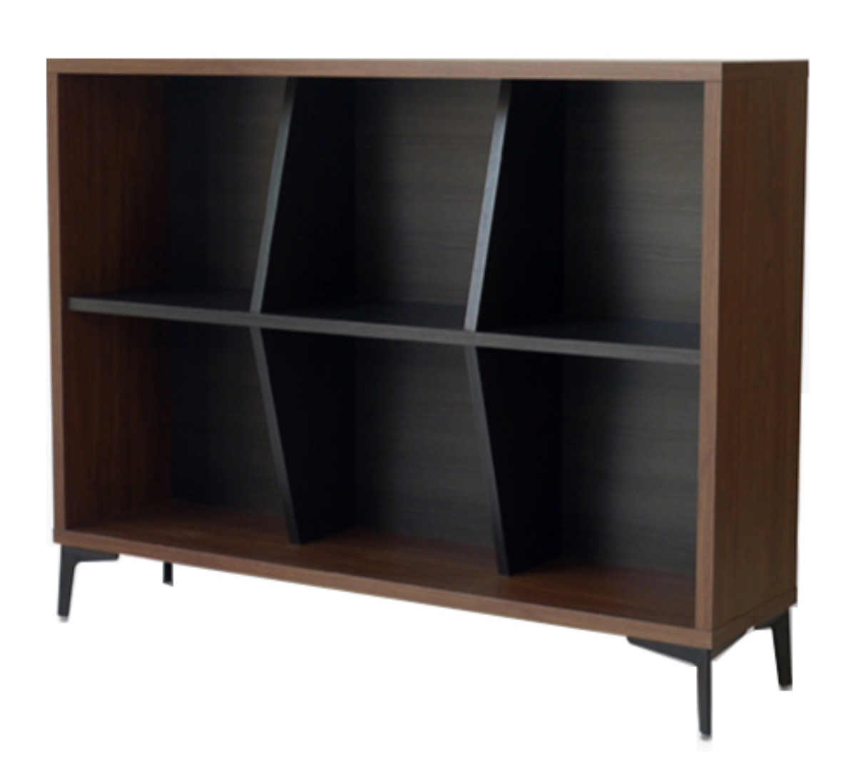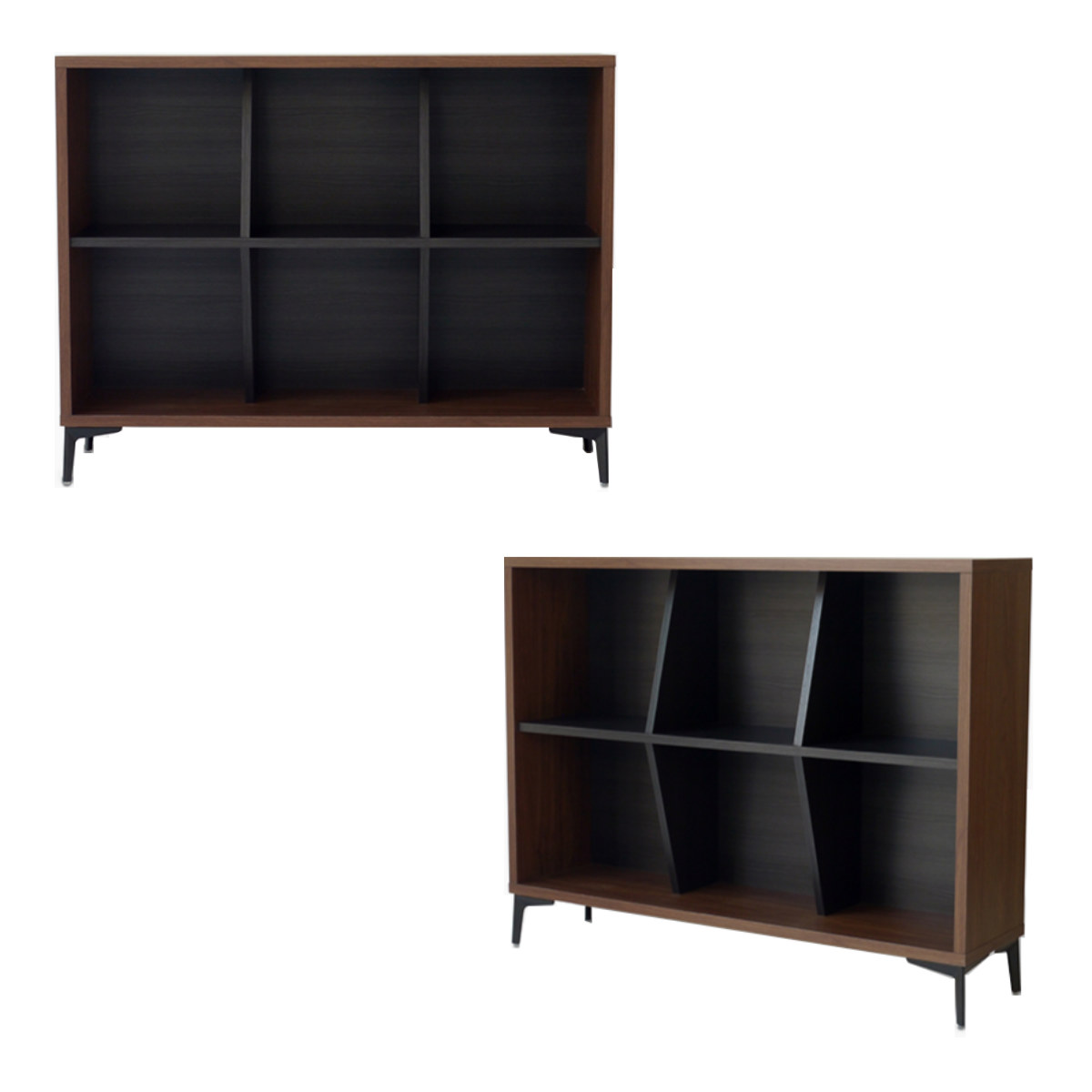 斜めの固定仕切りで、見せながら整理整頓できます。本や雑貨、小物をジャンルごとに収納でき、取り出しもスムーズです。