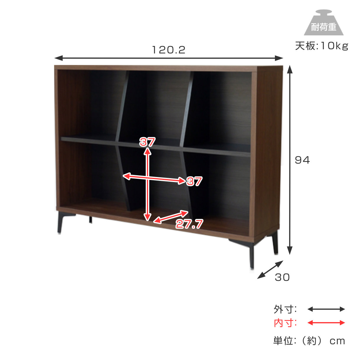 | サイズ | 約 幅120.2×奥行30×高さ94(cm) |