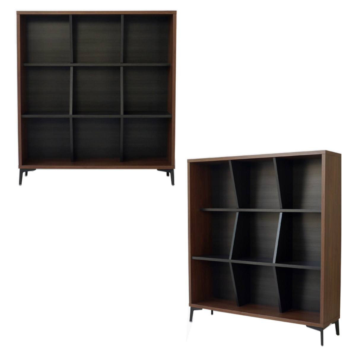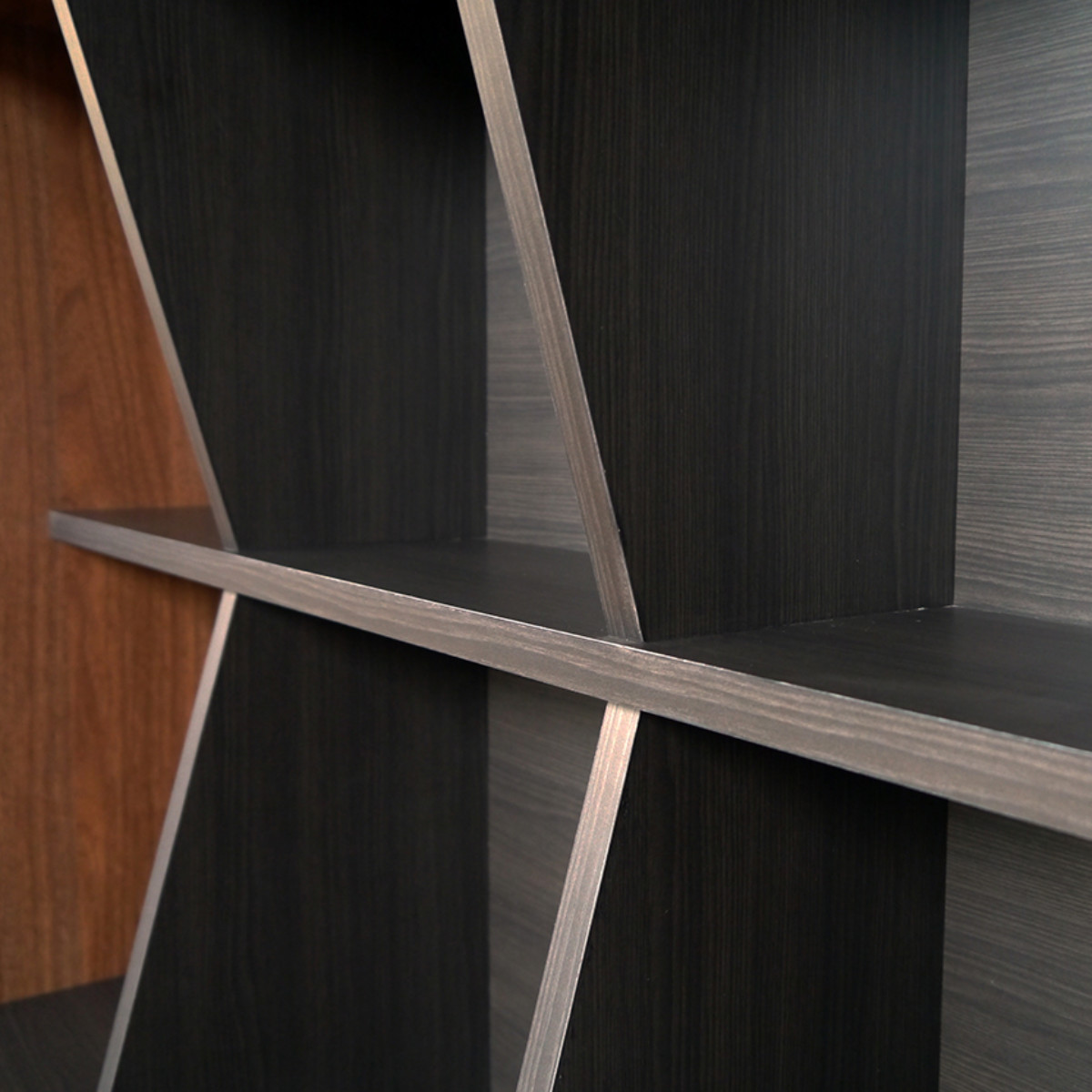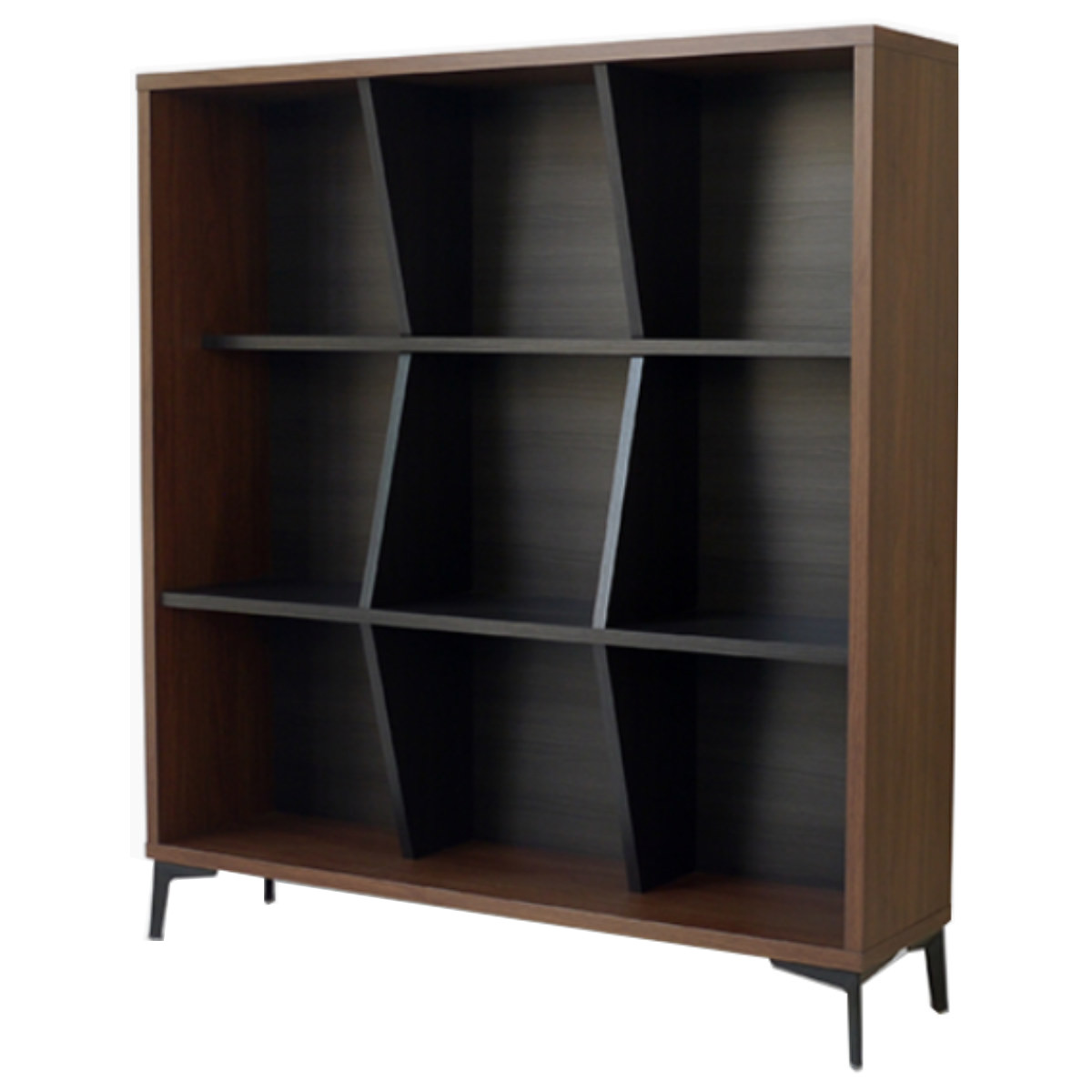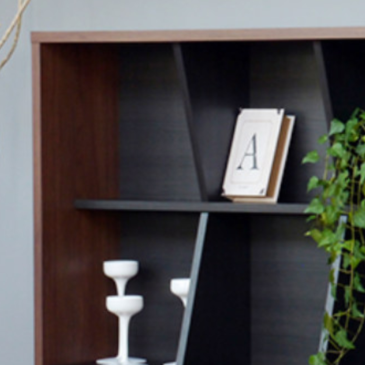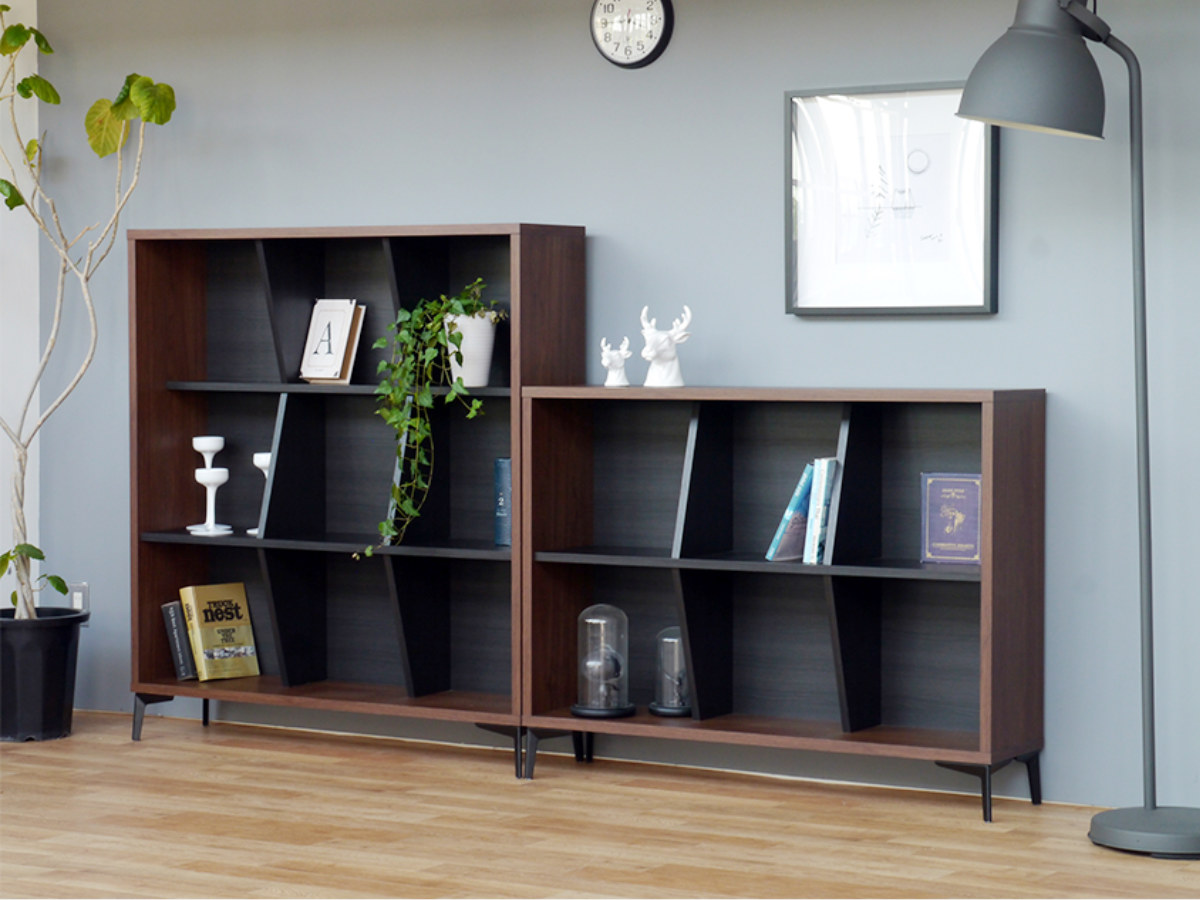 斜めの固定仕切りで、見せながら整理整頓できます。本や雑貨、小物をジャンルごとに収納でき、取り出しもスムーズです。