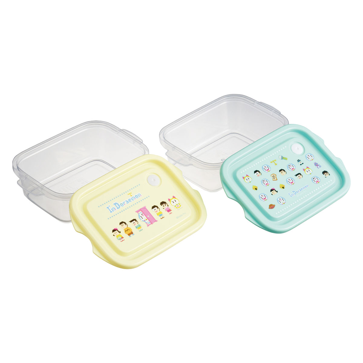 蓋をパチッとはめこむタイプのプラスチック製のお弁当箱です。一つあたりの容量は約500mlなので、ご飯とおかずを分けて入れたり、サラダやデザート入れとしてお使いいただけます。スタッキング可能なので、保存容器としてもおすすめです。収納時は、蓋・本体を積み重ねることができるので、場所をとらずコンパクトに収納できます。