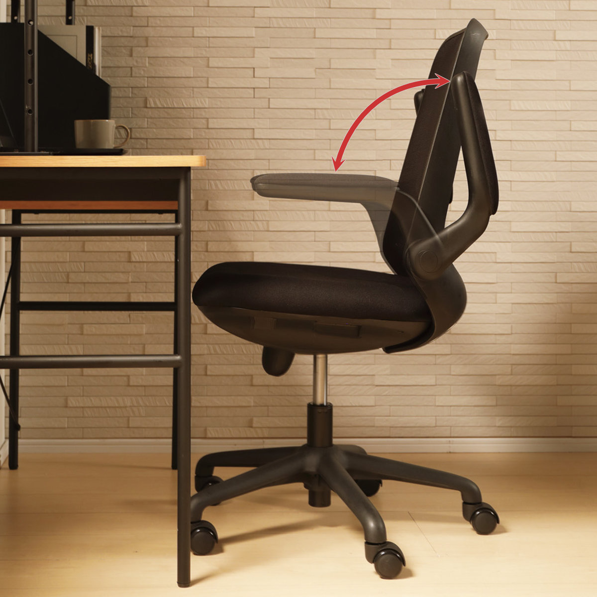 デスク下にすっきり収まる 跳ね上げアームの快適チェア