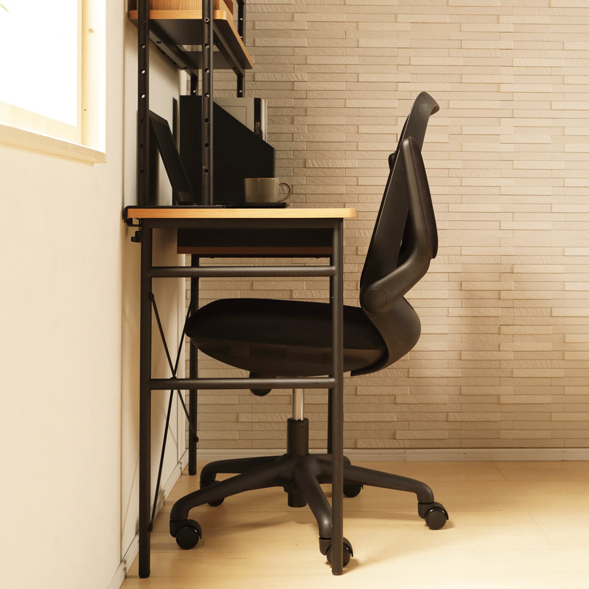通気性に優れたメッシュ生地や、体に合わせて調節できる機能を備えた多機能オフィスチェアです。背もたれはムレにくいメッシュ仕様で、湿気がこもりにくく、長時間でも快適な座り心地。サイドレバーで座面の高さを調節できるため、デスクの高さに合わせて無理のない姿勢で作業できます。