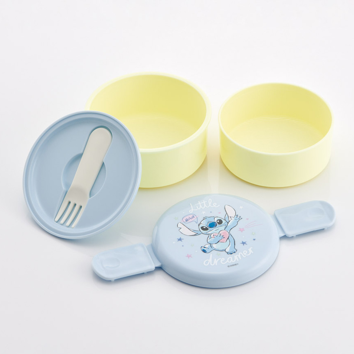 便利なミニフォーク付き、丸型ランチボックス