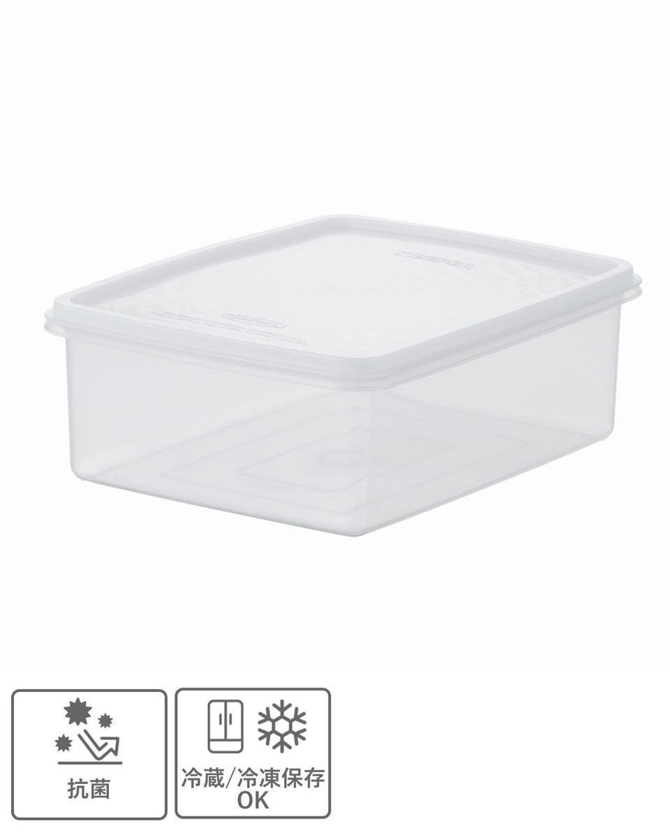 中身がひと目で確認できるクリアな保存容器です。抗菌・防汚加工を施しているので、いつも清潔にお使いいただけます。シリコーン配合で油汚れも落としやすく、お手入れも簡単。フタをすれば積み重ねて収納でき、食品の保存はもちろん、キッチン用品や小物整理など幅広い用途に活躍します。
