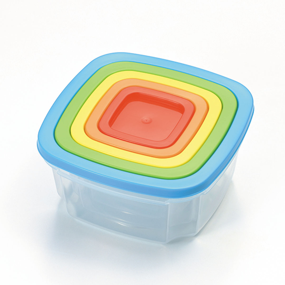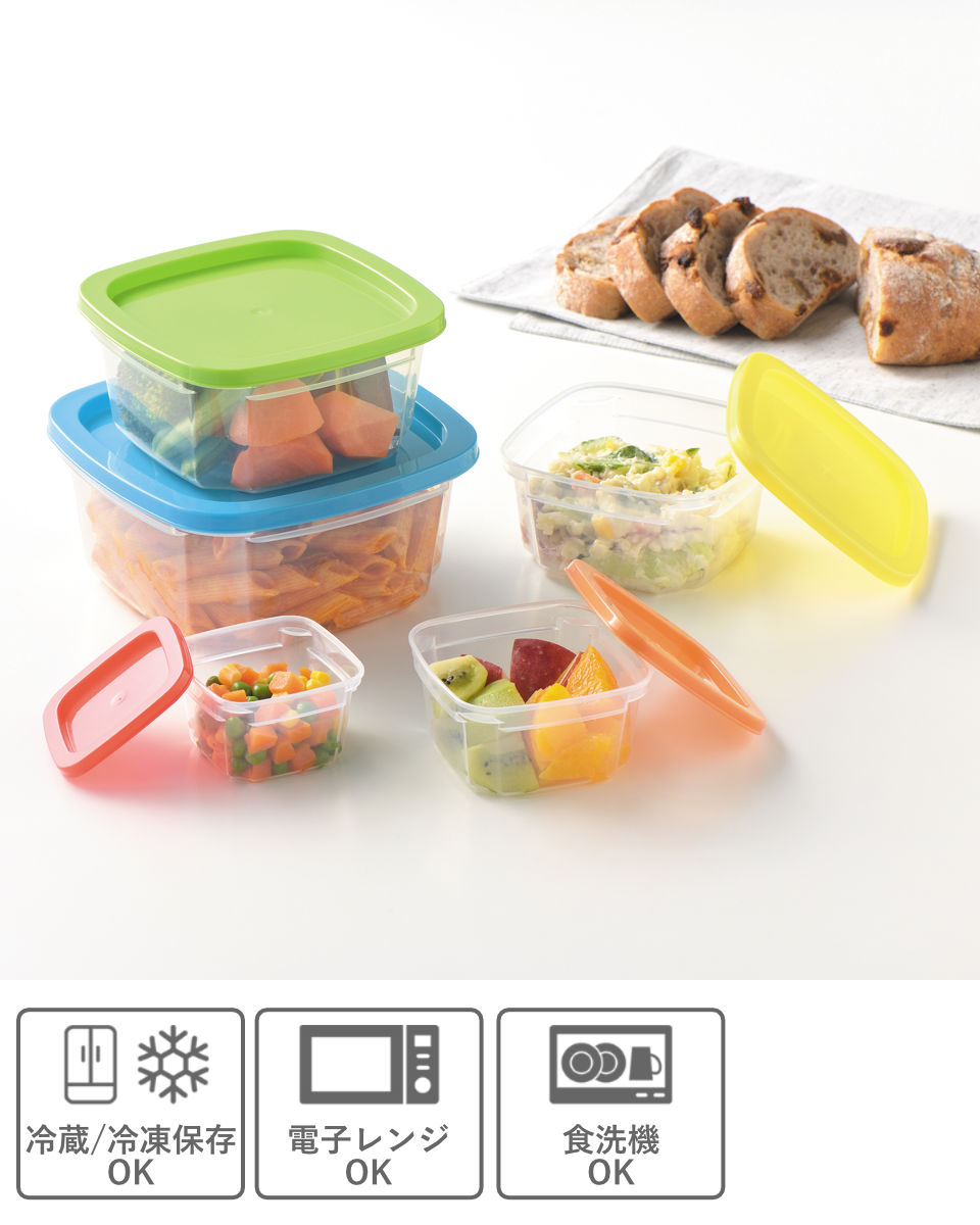 ●フタは5色展開で区別しやすく、透明な容器で中身もひと目で確認できます。