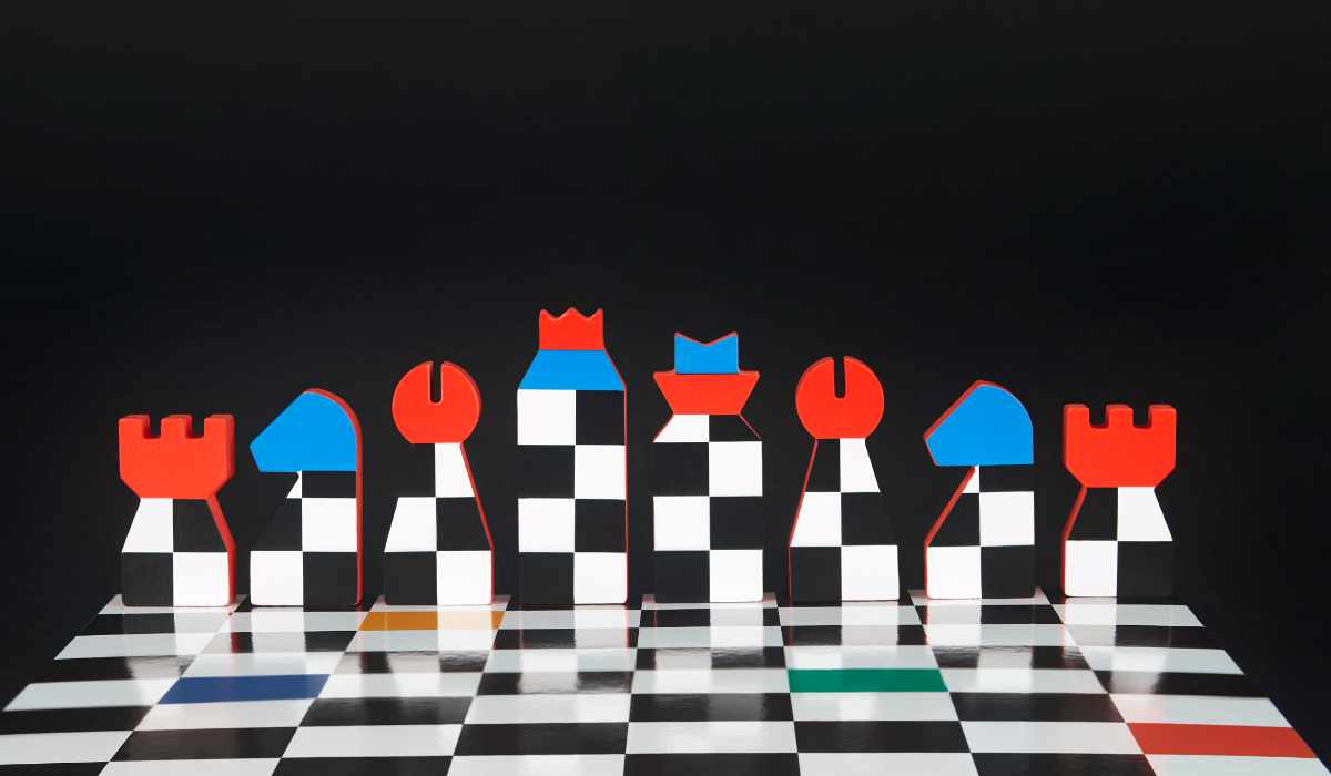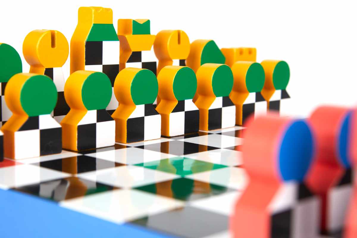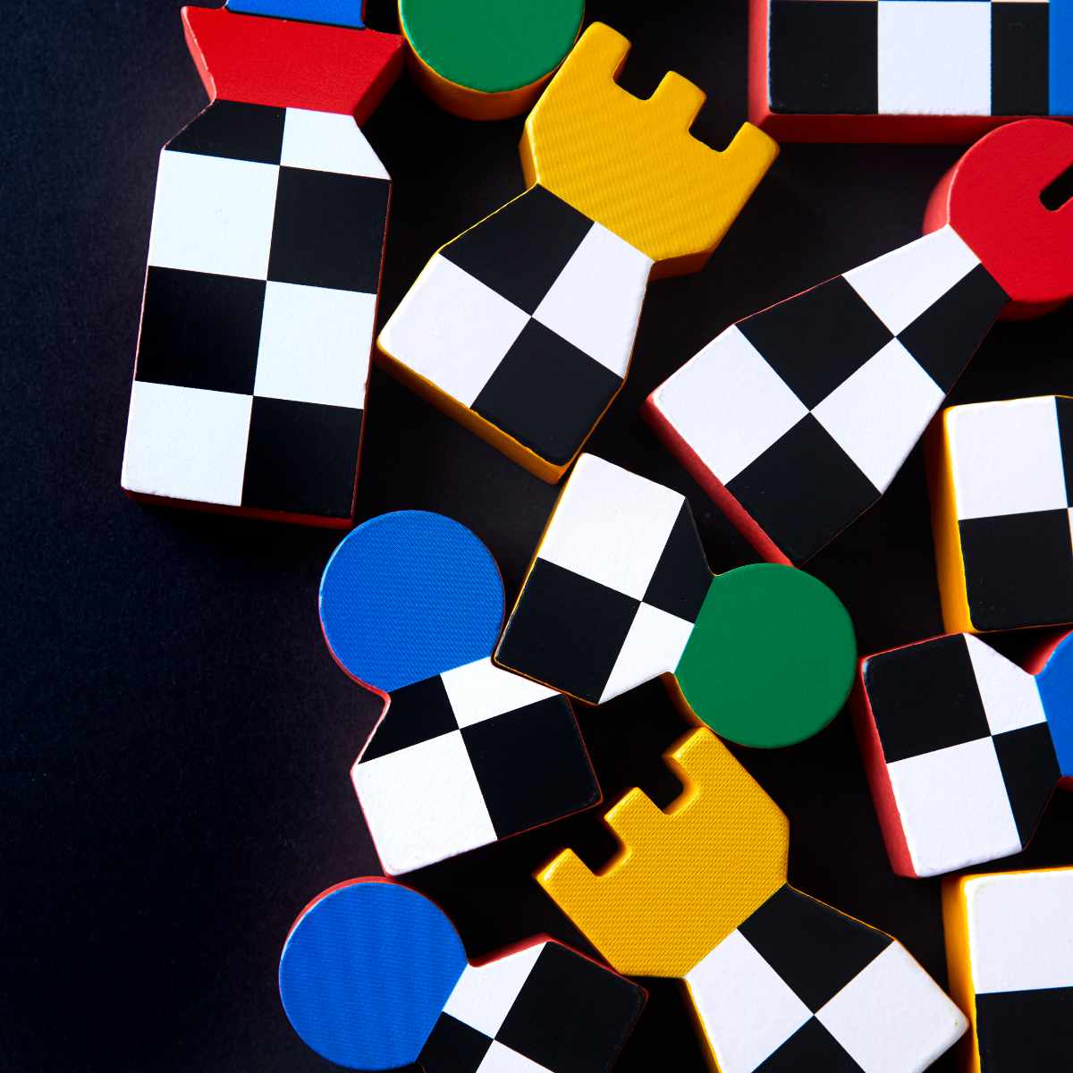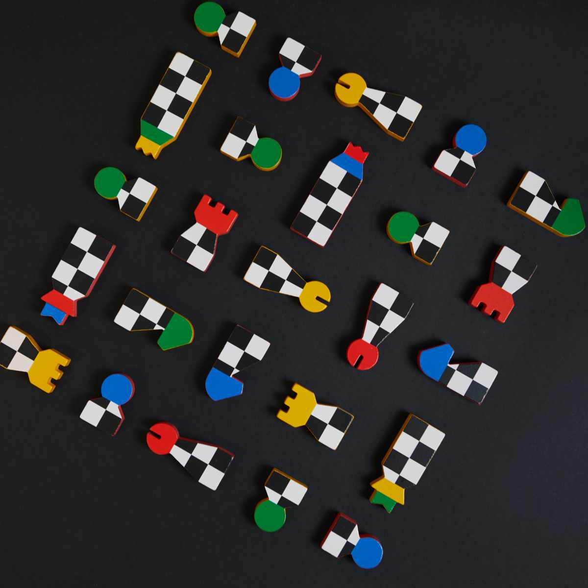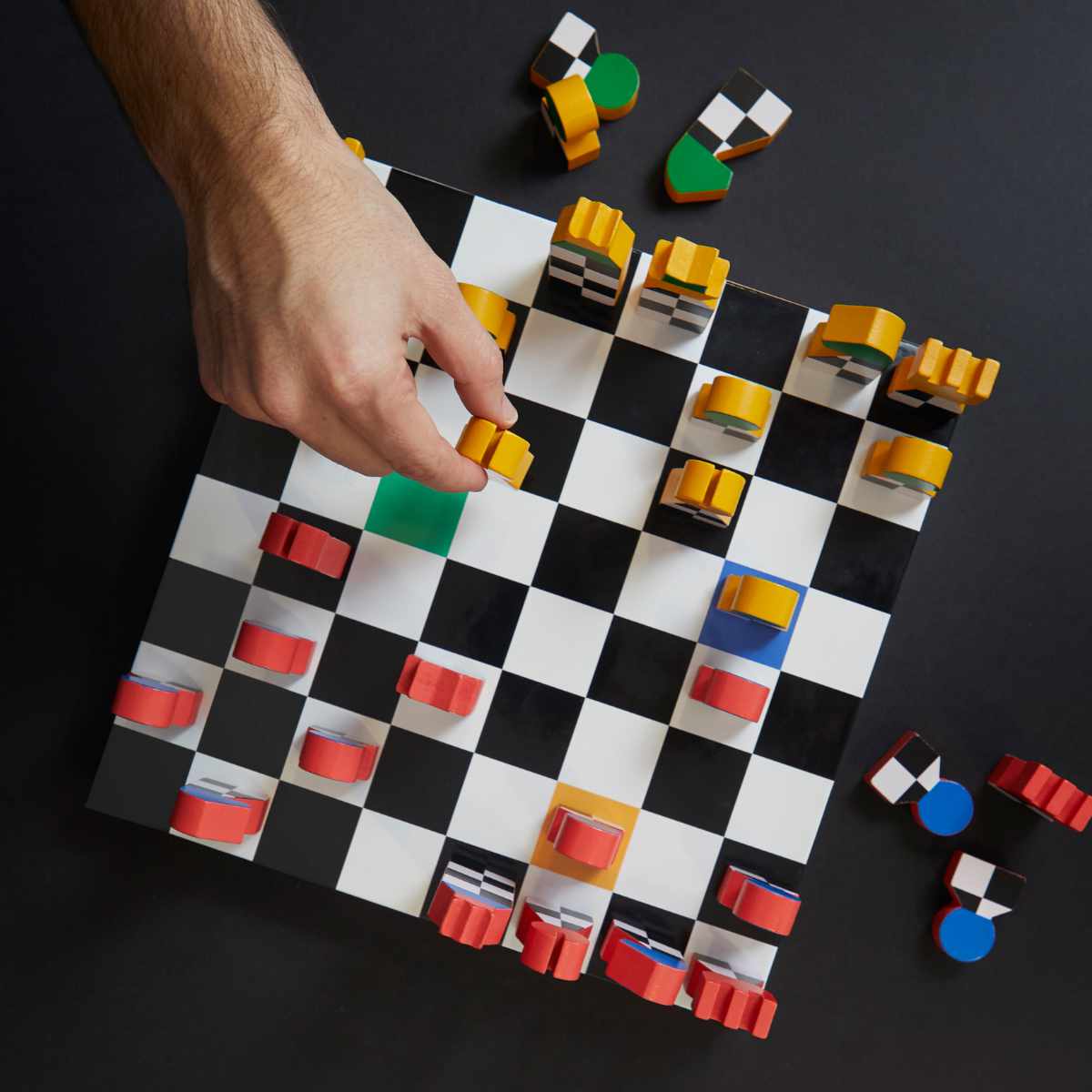 カラフルな駒とユニークなフォルムが目を引く、ポップでモダンなチェスセットです。駒は伝統的な形にとらわれないデザインで遊び心を感じさせながらも洗練された印象に仕上げられています。