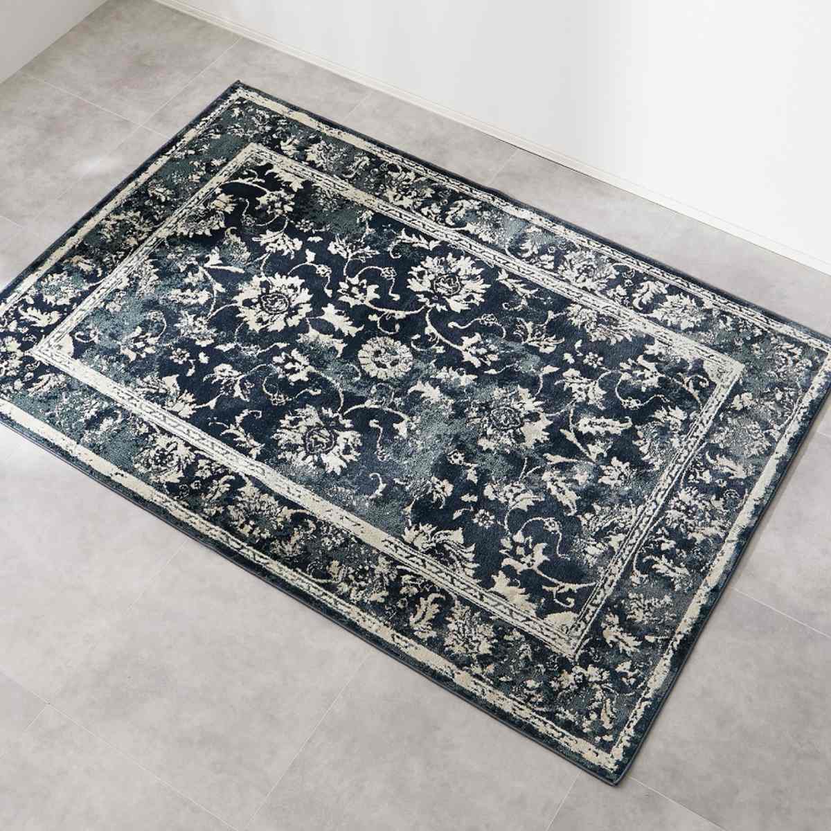 アラベスク調の細かな模様と、ヴィンテージのようなかすれを織りで表現したウィルトン織ラグです。オリエンタルな雰囲気が魅力で、空間に上品さと高級感を添えてくれます。