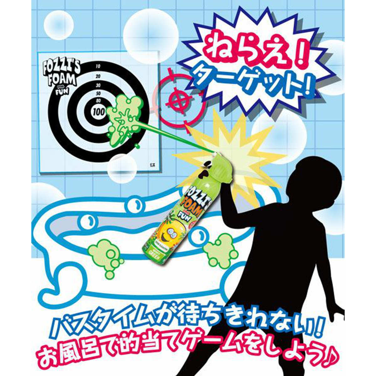 フォーミングタイプのボディーソープ専用、お風呂で遊べる的当てゲーム用ターゲットです。泡をシュートして狙うだけで、いつものバスタイムが楽しいゲーム時間に変わります。大人もつい夢中になってしまう楽しさです。