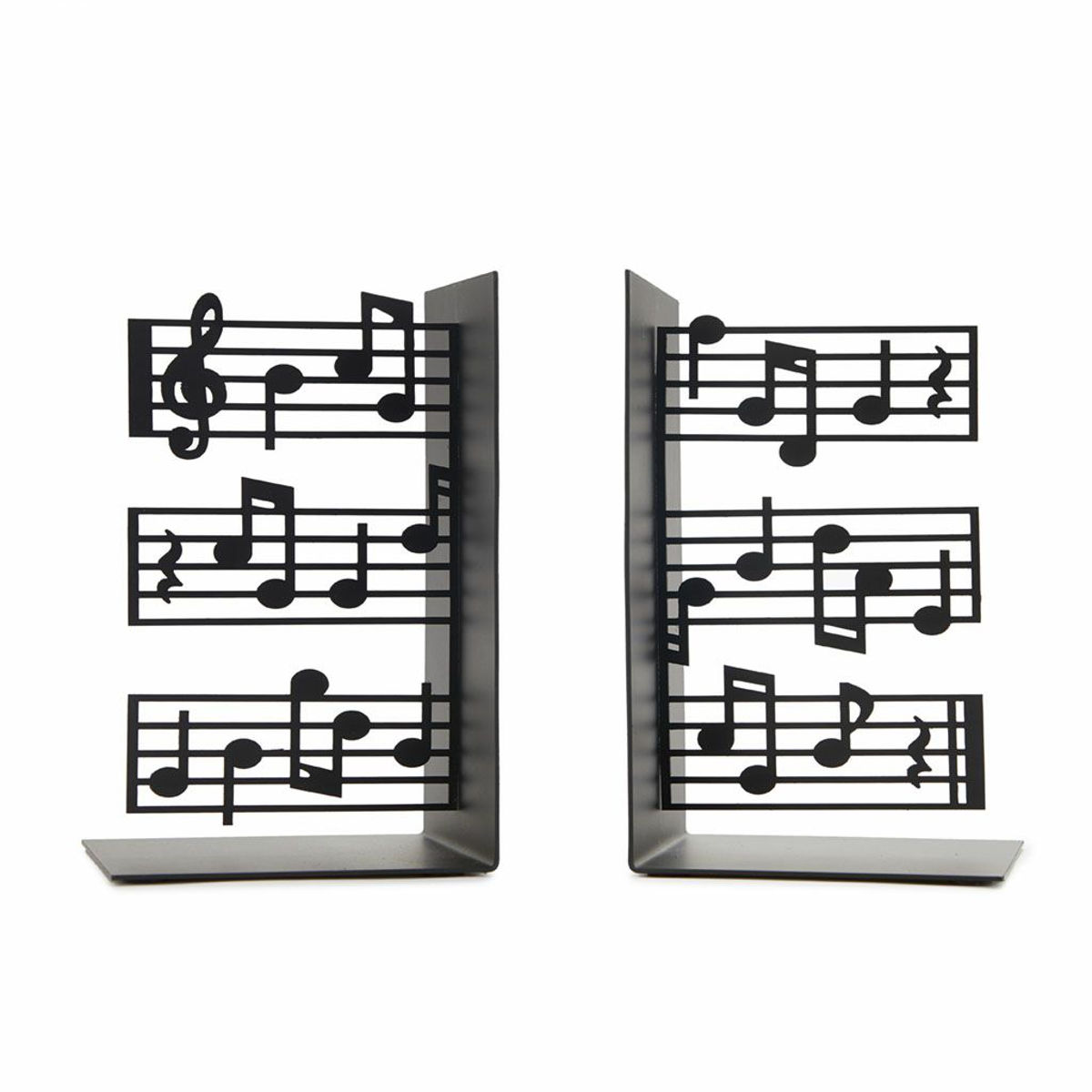 本から音楽が流れてきそうな、五線譜が彩るアートなブックエンドです。本棚に並べるだけで、まるで本から音楽があふれ出すよう。五線譜と音符をモチーフにしたデザインが、お部屋やデスクをセンス良く演出します。