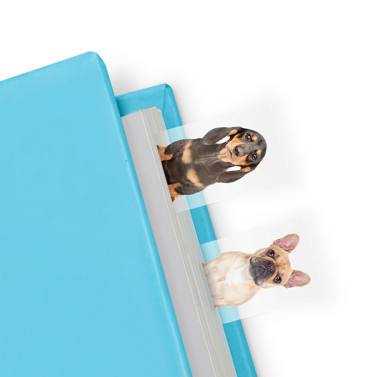 本やノートを開くたび、かわいいワンちゃんがひょっこり顔を出す、透明フィルムタイプのドッグ付箋です。ページのすき間からのぞく姿がとってもキュートで、思わず笑顔に。しおりとしてはもちろん、手帳やノートのインデックス・目印としても使えます。いつもの読書や勉強時間が、ちょっと楽しくなるアイテムです。