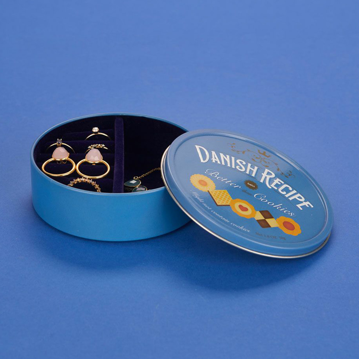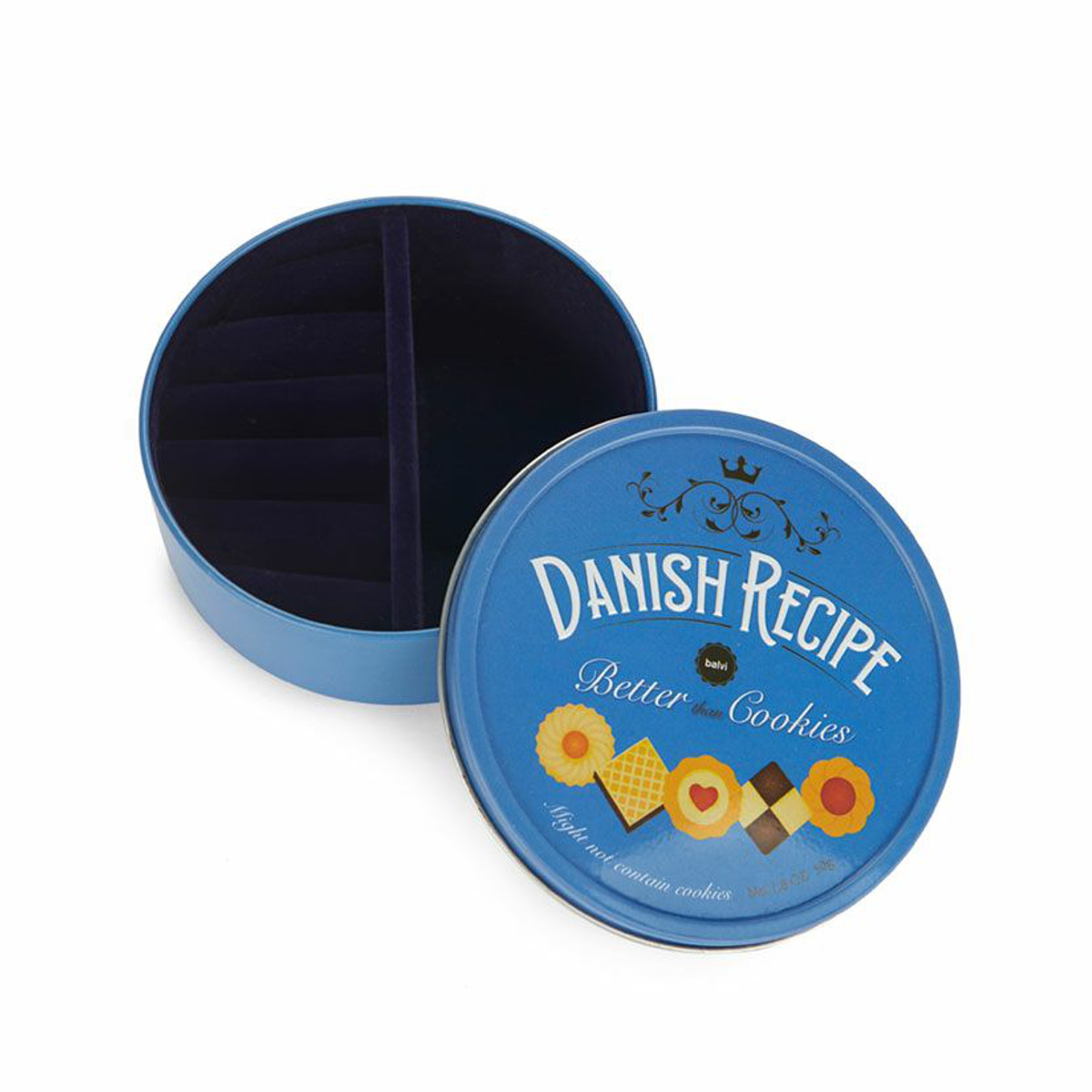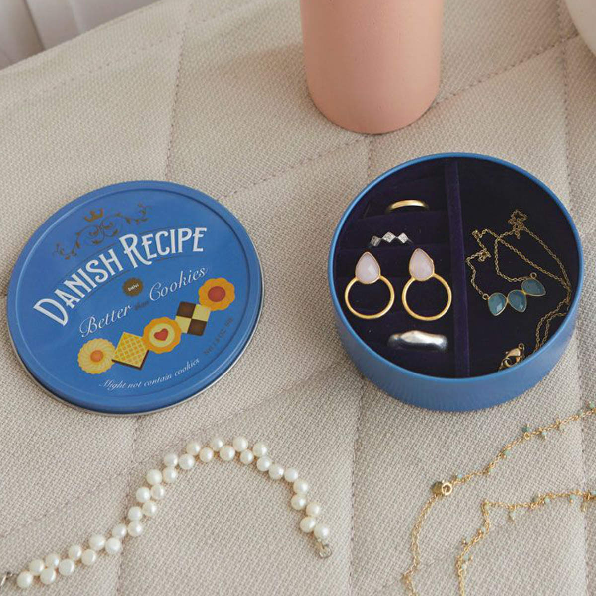 海外のお菓子を思わせるレトロでかわいいジュエリーボックスです。さわやかで落ち着いたブルーが上品な印象で、どんなインテリアにもなじみます。