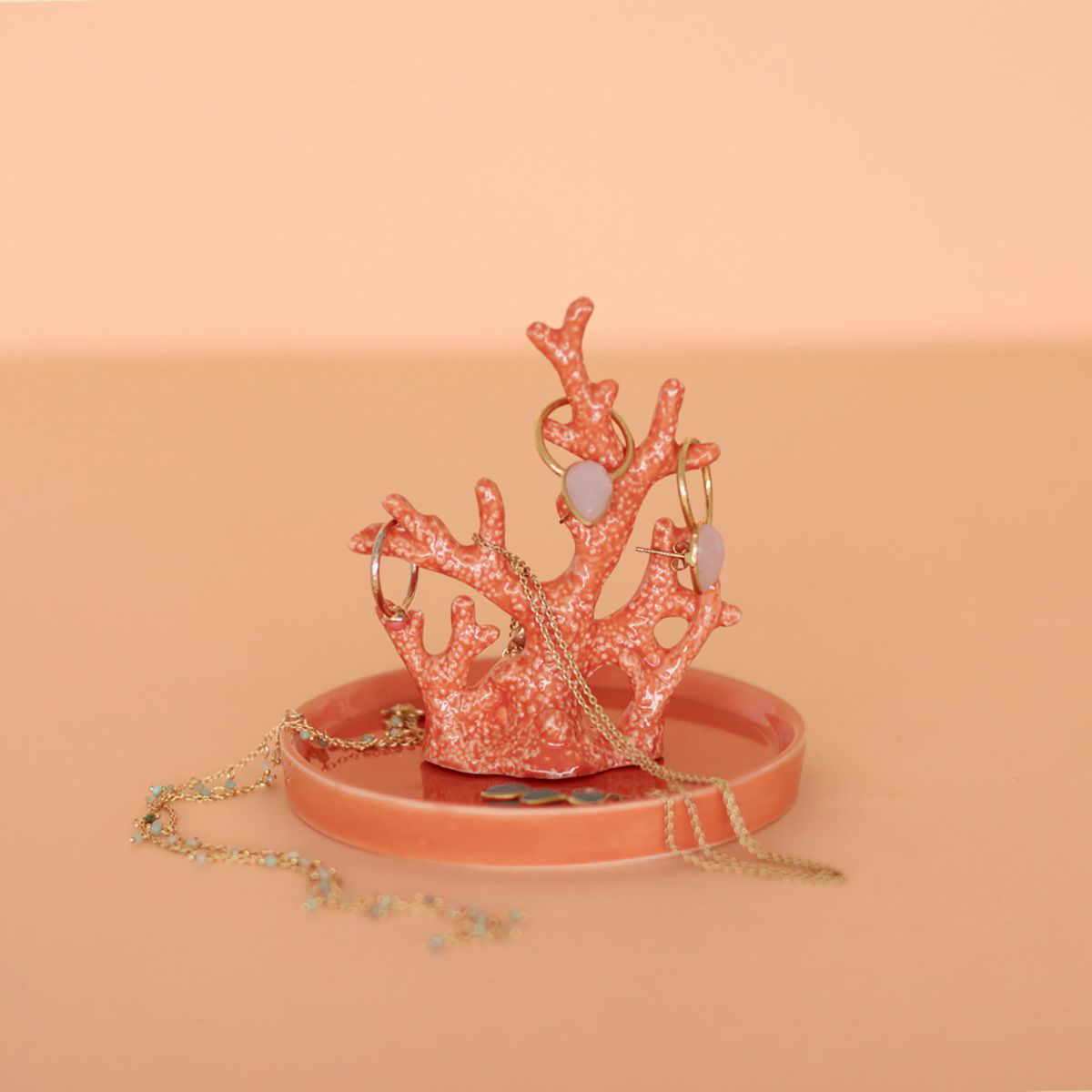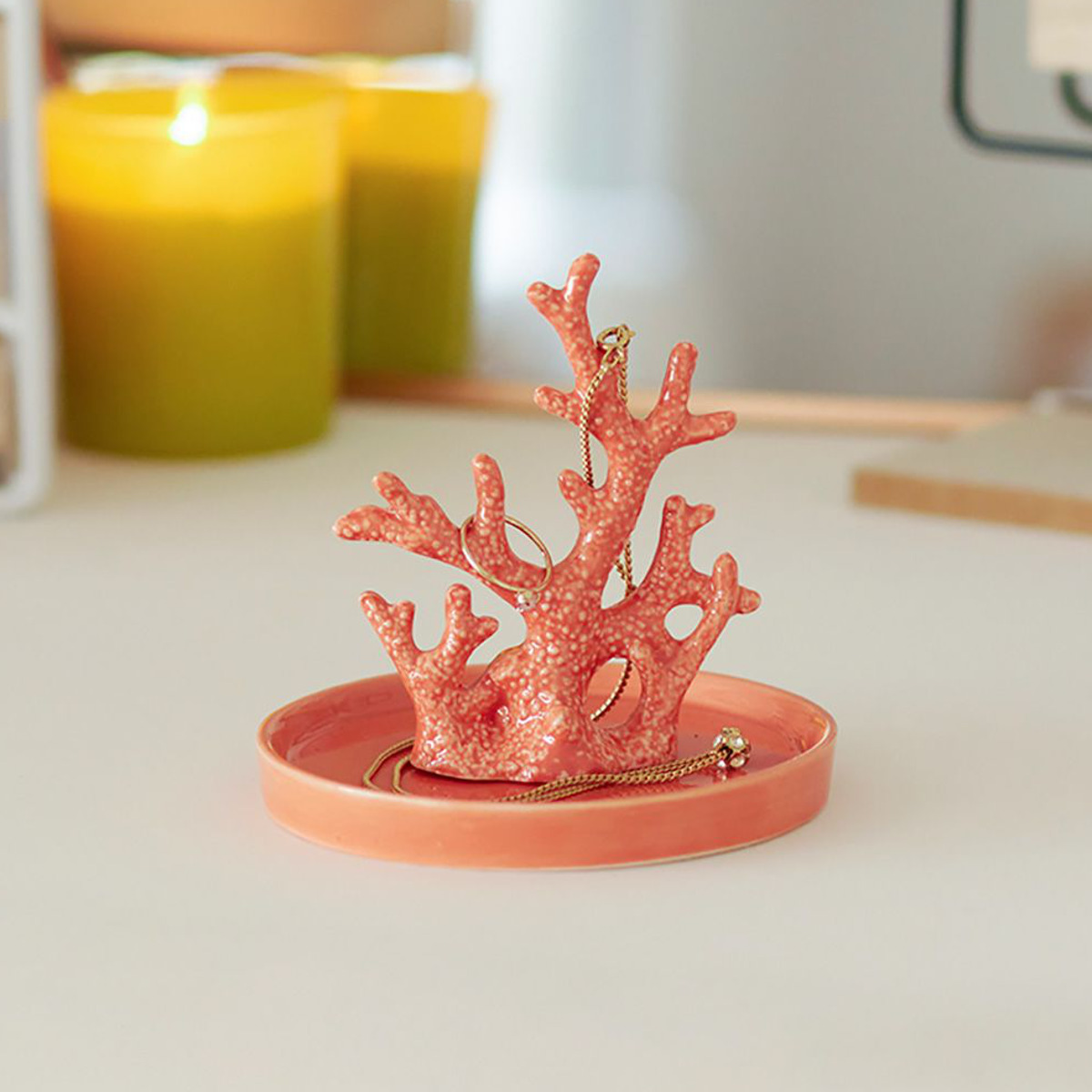 アクセサリーを引き立てる、印象的なモチーフのリングスタンドです。個性的なフォルムと鮮やかなカラーが目を引き、置くだけで空間に遊び心を添えてくれます。